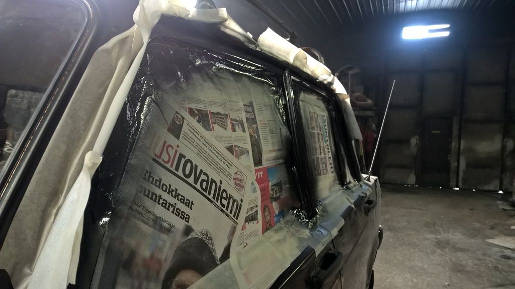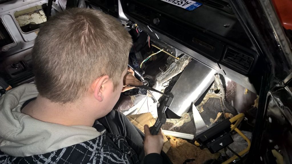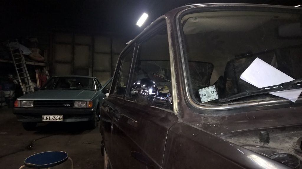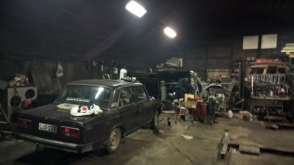 Pakosarjan tunneli saatu hitsattua loppuun ja auto tuli massattua. Samalla tuli selville miksi entinen omistaja valitti ettei lada ole lämmin auto. Sisätilakennon päällä oli valehtelematta 10 cm lehtiä, havuneuloja ja käpyjä. Samalla tuli purettua jumissa oleva lämppärin hana ja alettu suunnitteleen sähköisiä moottoreita hanoihin ja läppiin. Huomenna jatketaan pajotusta.