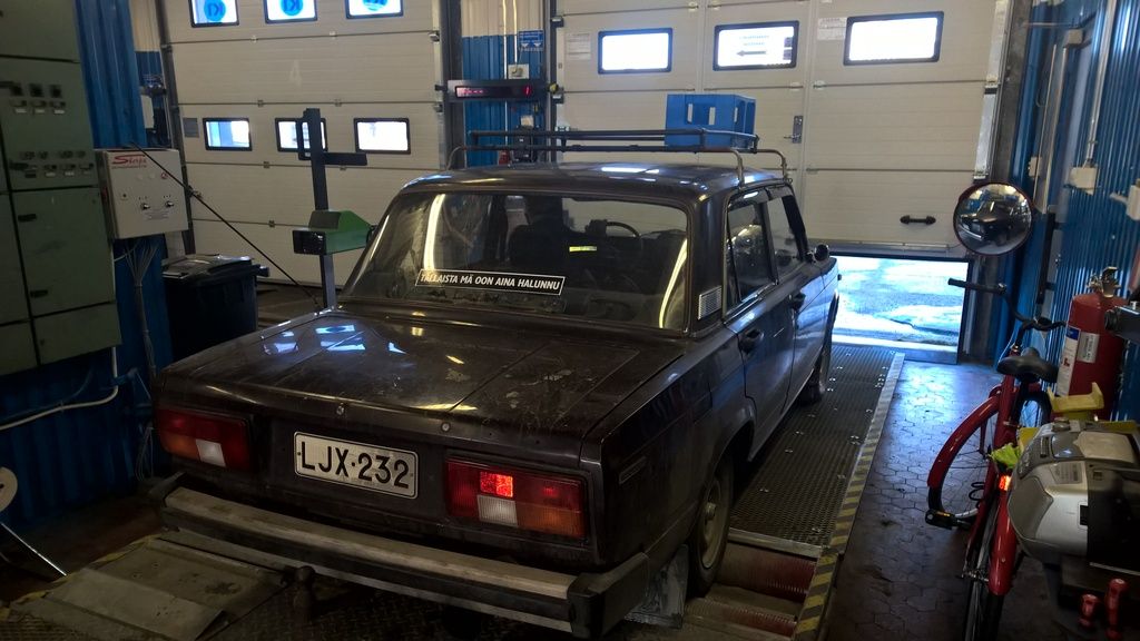 Ainoa mistä pääsi huomauttamaan oli takajarrujen toimittamattomuus. Käyttöjarrun heitto oli 50% ja käsijarrun heitto oli 67%. Nauratti hieman konttorilla kun ukko tuli takaisin papereiden kanssa tuumien että onpa pirteä ykskakkonen