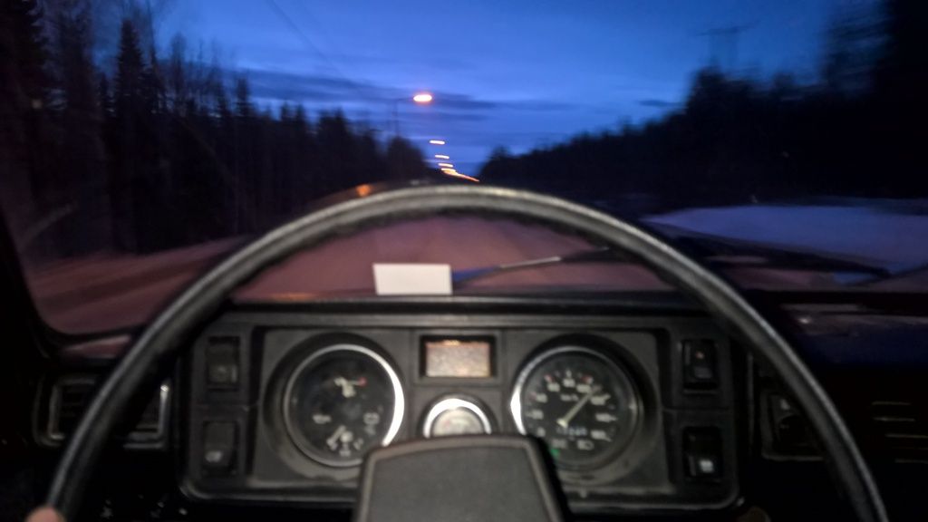 Iivanaan saatu taas tehtyä paljon. Mittaristo vaihdettu uudemmasta. Samalla korjattu auton käyntiin jäämis ongelma lisäämällä perus 3A diodi laturin herätejohdon väliin. Laturin valo ei kyllä toimi mutta onhan meillä toki volttimittari. Pakosarja on punottu nyt lämpönauhalla ja tuli huomattua että imusarja vuotaa vielä. Kattotelineet on lyöty myös paikoilleen. Paluulinja tuli tehtyä perinteisestä 8 mm kupariputkesta jota ostin vuokraisännän lvi-liikkeestä. Nyt pitää skarpata ja saada lada nippuun. Huomasin nimittäin että leima loppuu 14.04