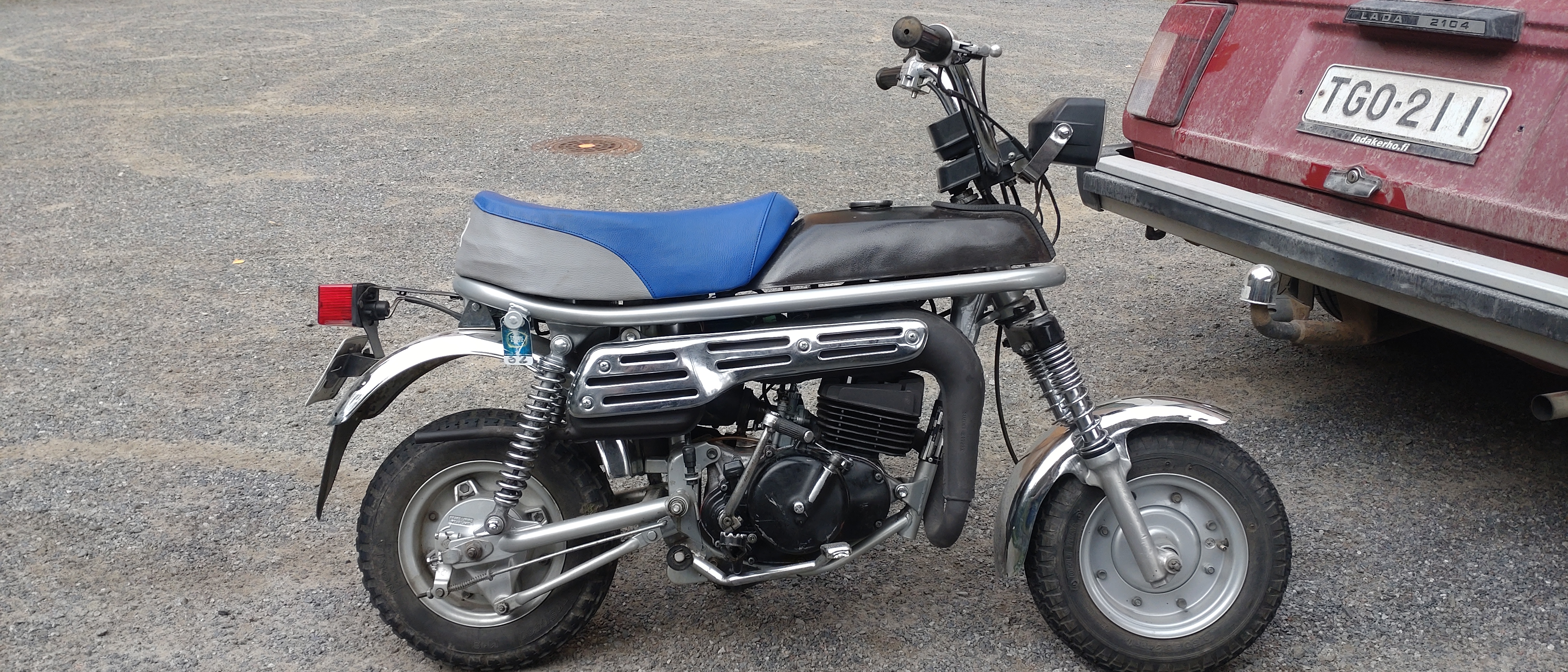 Pitkästä aikaa täälläkin kirjottelen. Ostin tuossa ite keväällä 99vm suzuki pvn. Hieno historia sinänsä että avopuoliso sillä on aikonaan mopokortin saatuaan ajellut ja myytiin n, 12-13v pois ku tarvittiin rahaa autoon (muistaakseni) Nyt sain sitten sen verran edukkaasti lunastettua itelle takasin että ei tarvinnu miettiä. (3numeroinen summa) kilvissä ja täydessä ajokunnossa, harmikseni vanhalle asunnolle jäi tuorevoitelu vermeet kun poistin käytöstä jonku vian takia aikonaan. Talvella ois tarkoitus entisöijä ja saa emäntä ajella töihin kesäsin, ainaki niin se uhkasi.
