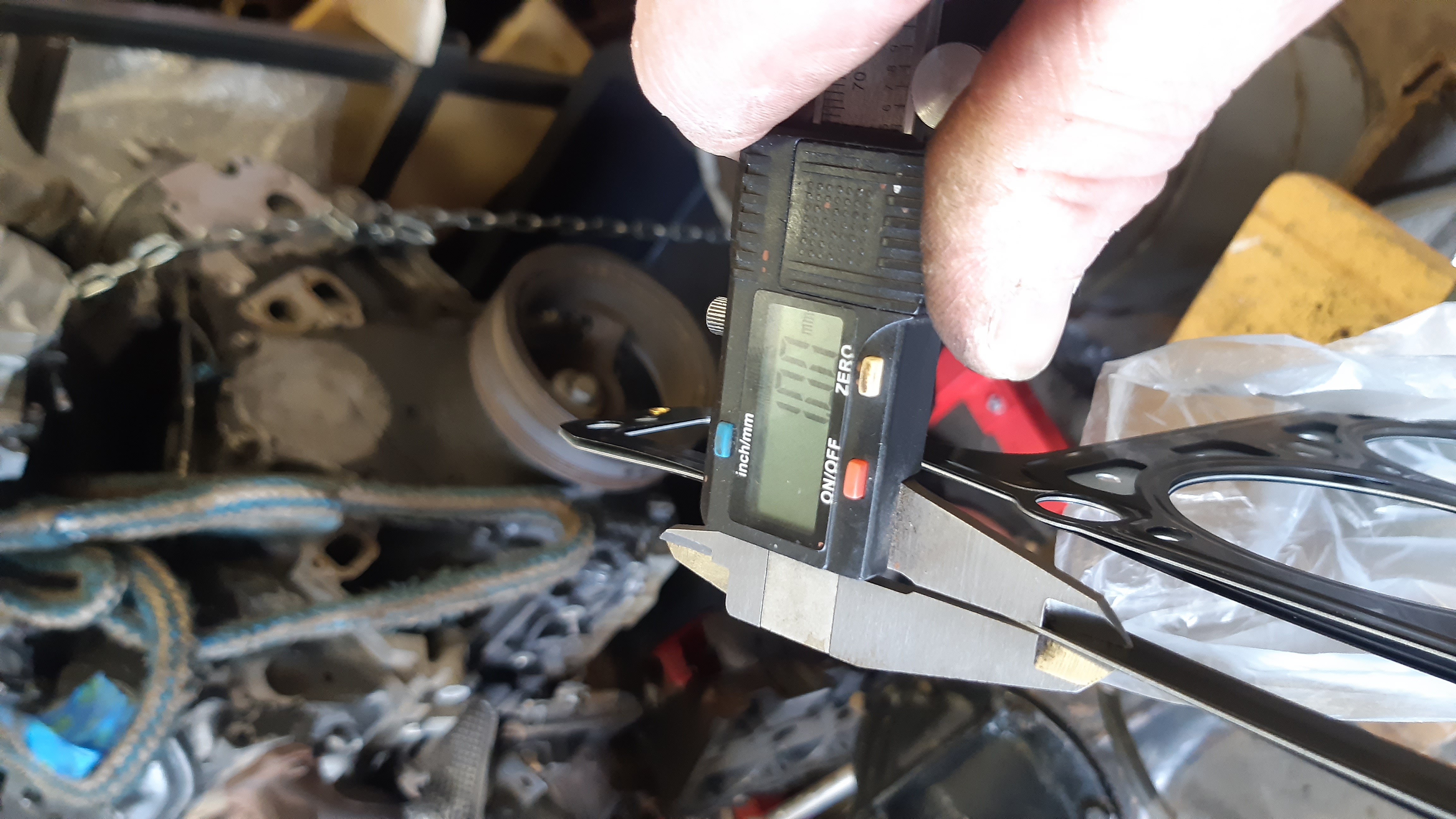 Käytettyä tiivistettä ei ollu niin heppasin kannen uudella tiivisteellä paikalleen ja paksuudeks jäi 1,3mm.