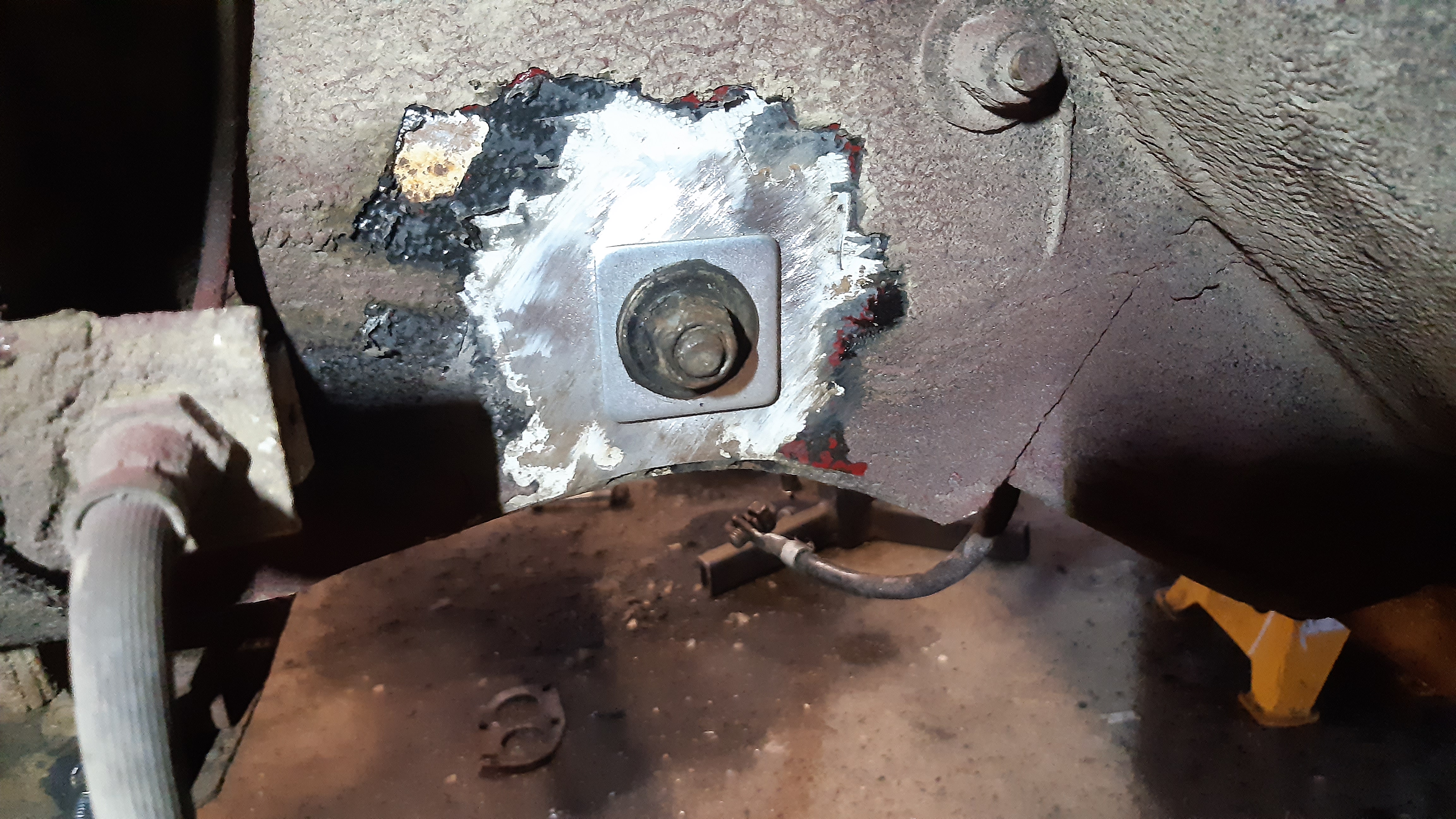 Simpukan ja apusimpukan kiinityspulttien alle hitsaan korilaatan notkumisen vähentämiseksi.