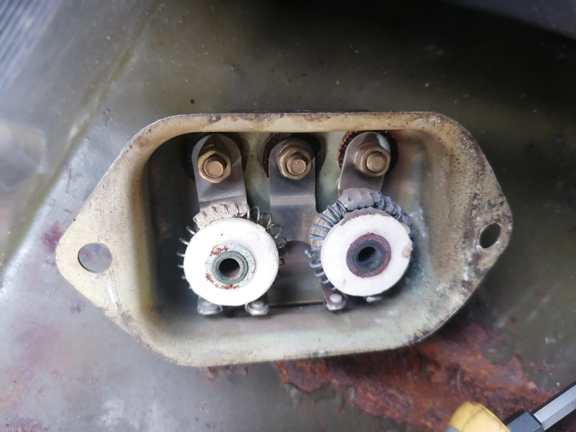 Mittasin sulakerasiasta niin kaikki kolme sulaketta oli ehjiä mutta en sitten tiedä meneekö kattovalo edes sulakerasian kautta. Mitään ovitunnistimia ei ainakaan ole, vain pelkkä katkaisin katossa lampun vieressä. On vaan kaikki pultit ja mutterit hapettuman peitossa niin kovin luotettavia mittauksiakaan ei saanut. Mutta yritin mitata eikä näyttänyt virtaa tulevan lampun johtoon.