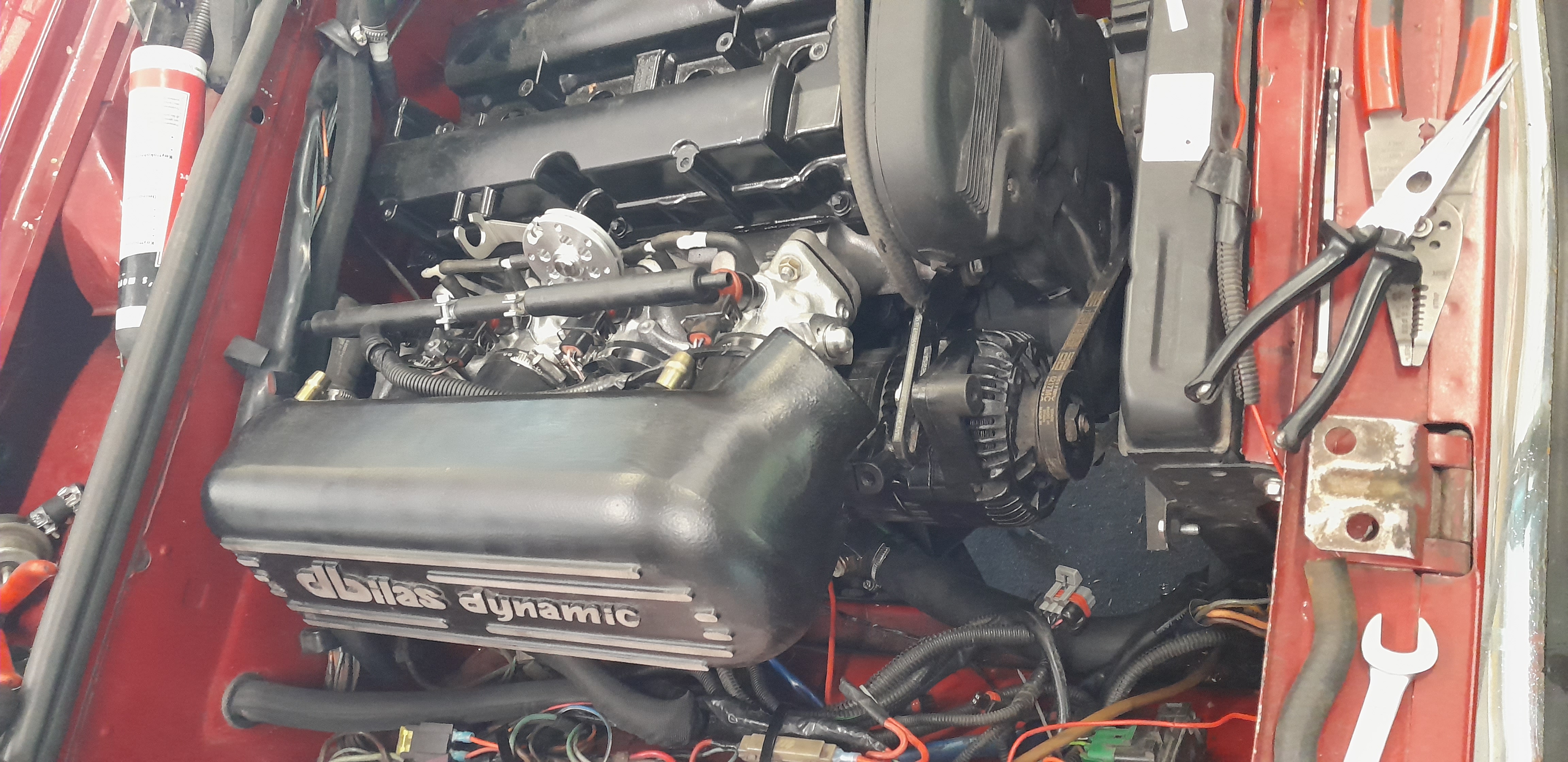 Löin tunerstudion kiinni ja kattelin vähän perussäätöjä ja käyttelin koneen lämpimäks. Hyvin tuntus vastaavan kaasuun eikä kussu mitään alleen. Pitää vielä pakosarjan loppuosa hitsailla, että saa liitettyä pakoputkeen ja monenlaista pikkuhommaa on suhrattava ennen vatasen dynoon viemistä...