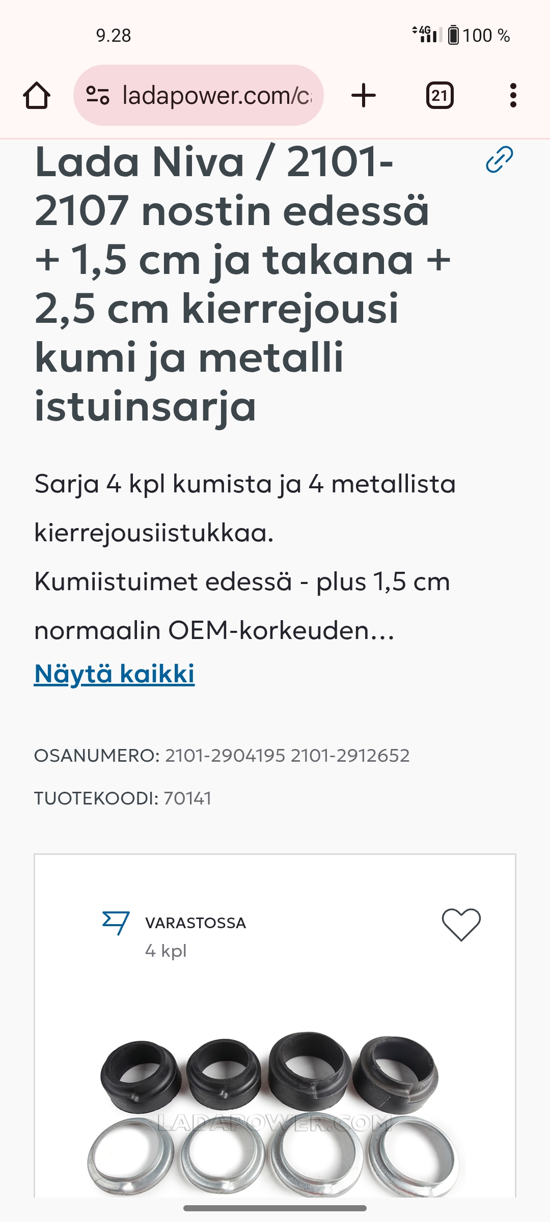 Mietityttää vain iskunvaimentimien kohtalo korottaessa kun ei aiempia kokemuksia ole...osaako joku neuvoa onnistuuko vakioiskareilla, vai pitääkö päivittää pitemmiksi? Mitkä passaisi suoraan, olen ymmärtänyt että uudemman nivan iskarit? Eteen meinasin vakiokeppien päihin laittaa tämmöset, mutta ei ole just nyt saatavilla