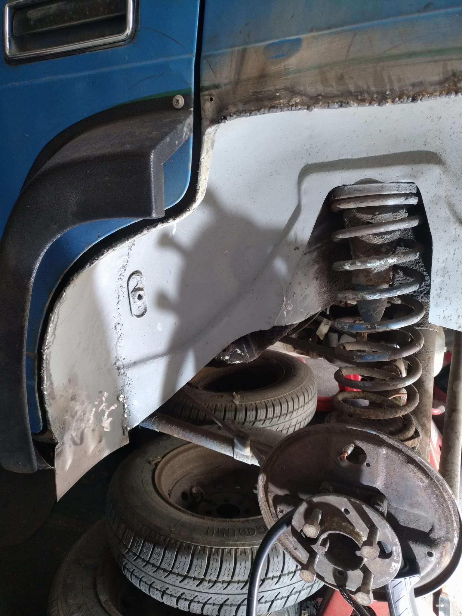 Oli sen verran rapeessa kunnossa kaaret ja kuskin lattia,että rupesin hieman vfts levikkeillä sit leikkiin…eli tulee rally-look farkku…saa jälkipolven rattaatkin mukaan.