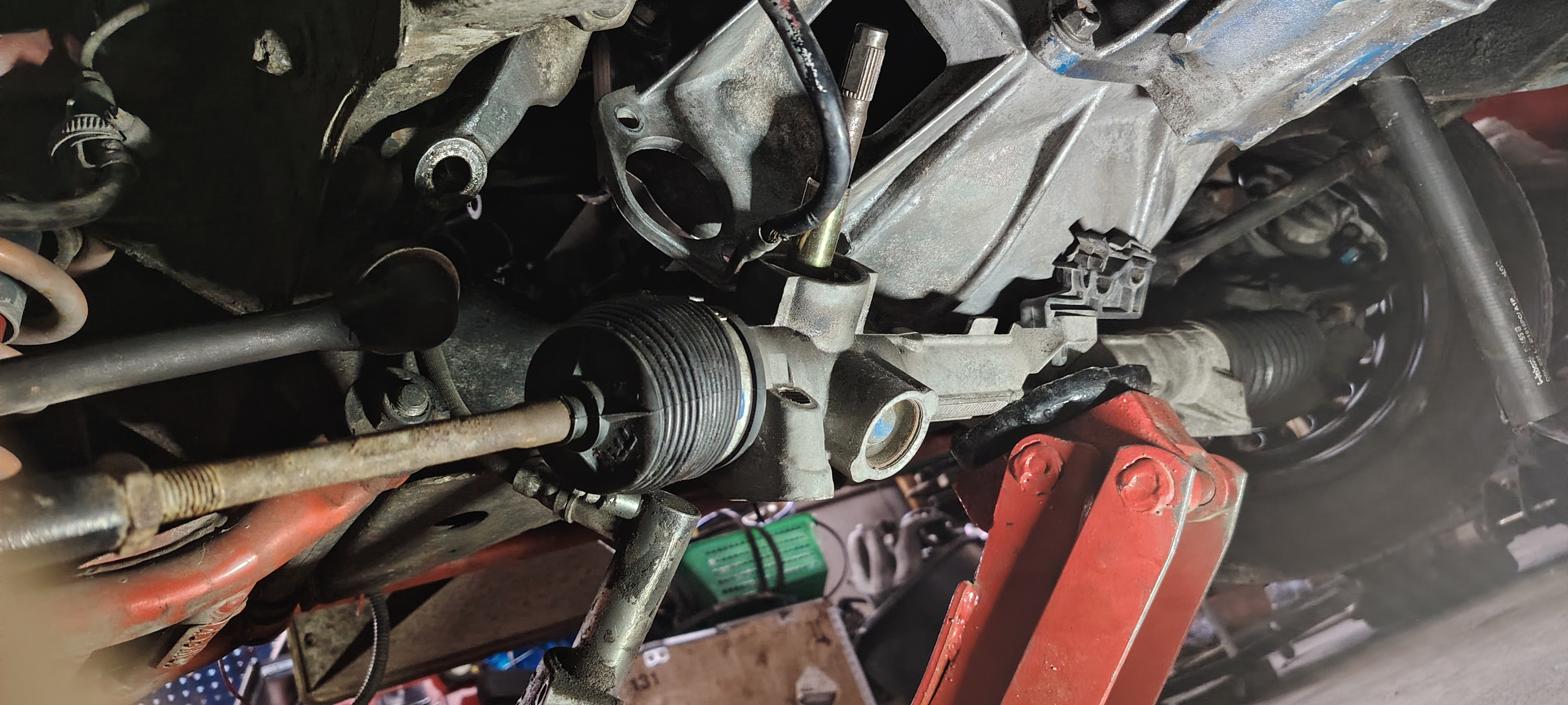 Hammastankoon löysin tuollasen mustangin tarvike ohjausakseli sarjan, siinä oli käypänen boori hammastankoon. Ohjausakselin paikka valikoitui nyt tuohon kaasupolkimen kohalle ja menee siitä jarrupolkimen yli rattiakselille järkevässä kulmassa.