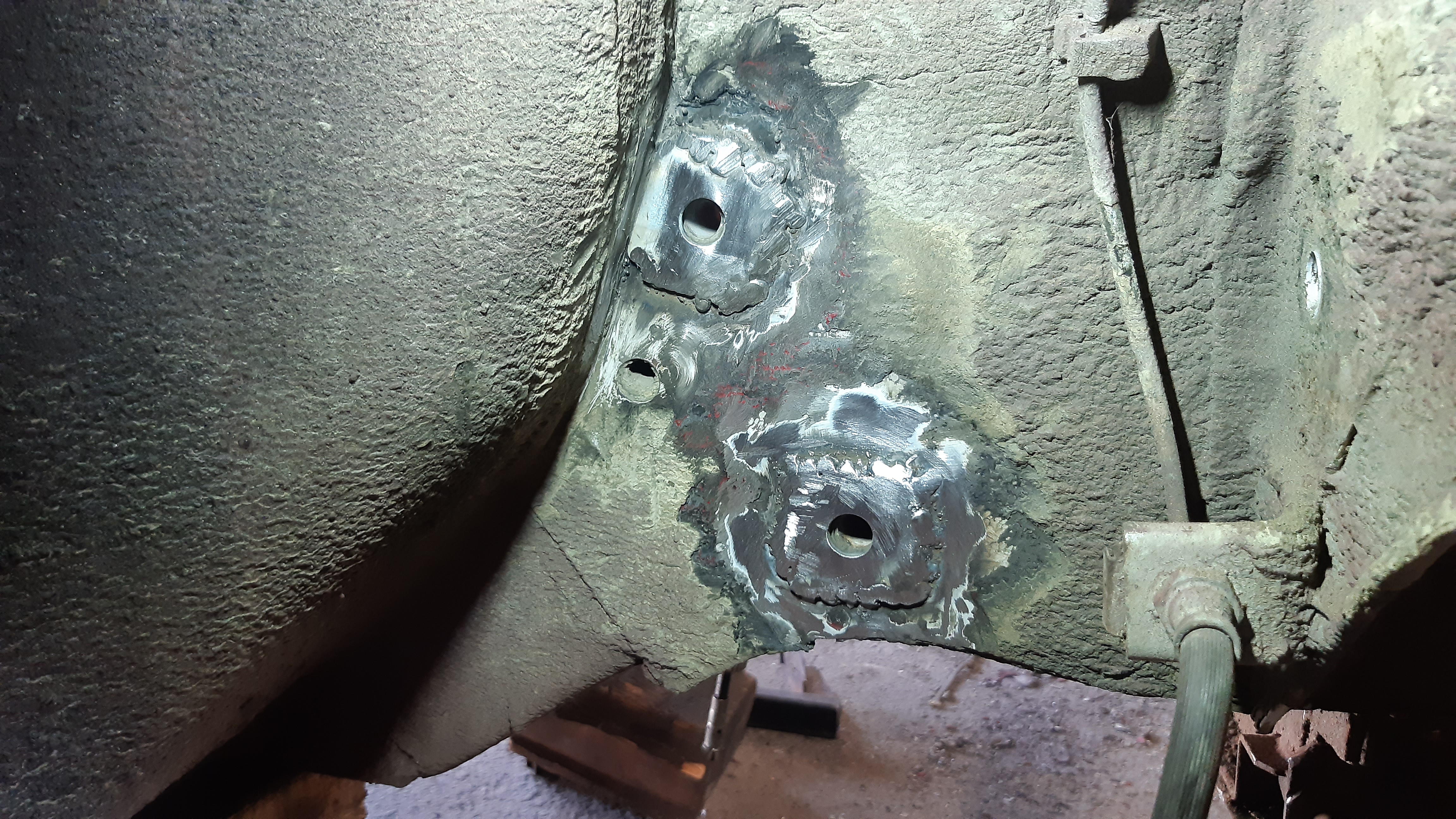 Simpukan ja apusimpukan kiinityspulttien alle hitsaan korilaatan notkumisen vähentämiseksi.
