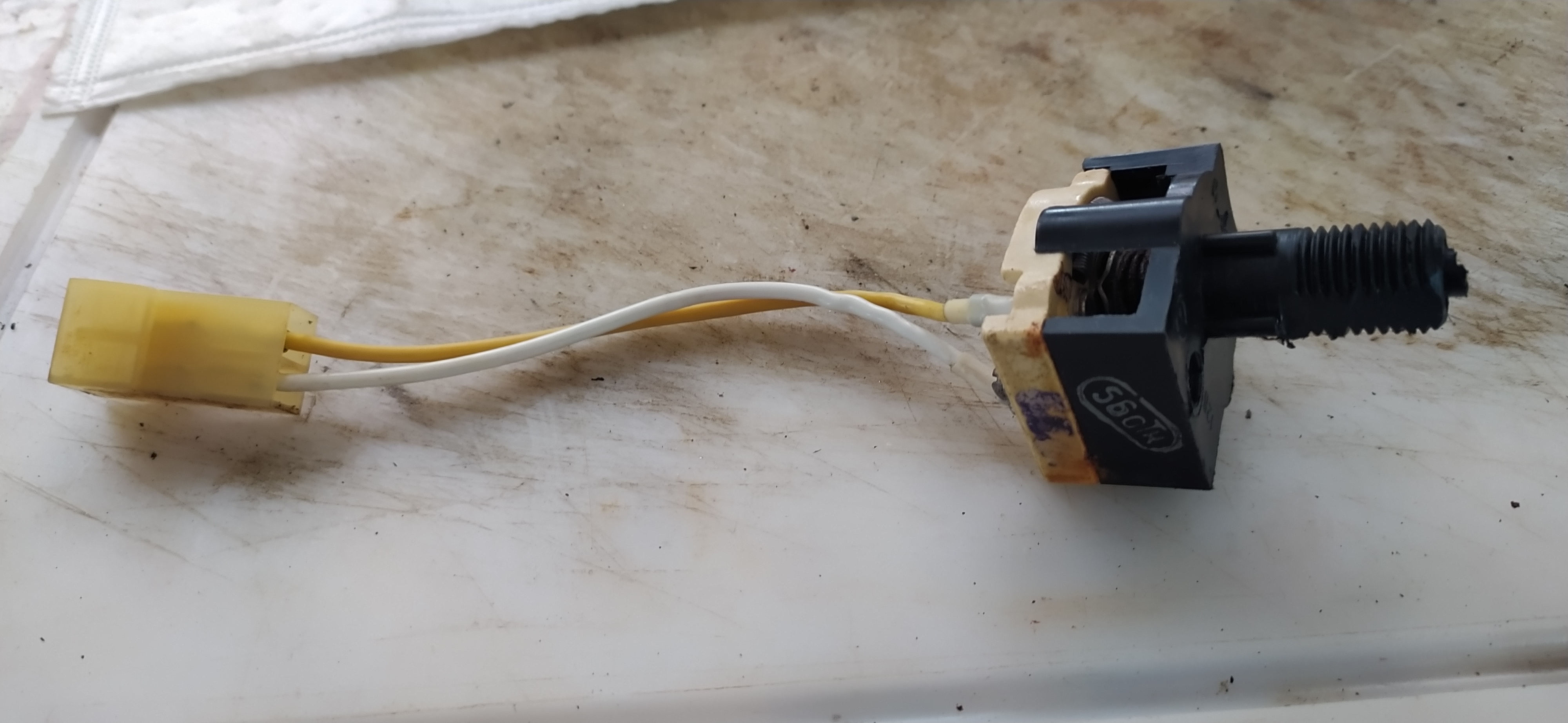 Ja toiseksi olen ihmetellyt lattiassa kumisen kokomaton alla olevaa kohoumaa kuskin jalkatilassa niin päätin näin 20 vuoden pähkäilynjälkeen ottaan selvää mikä tuo kyhmy on, eli kumimattopois yms listat ja alta paljastui tämmöinen"laite" joka on ilmeisesti mittarivalojen himmennin joka vaihdettu ja jätetty "jemmaan"