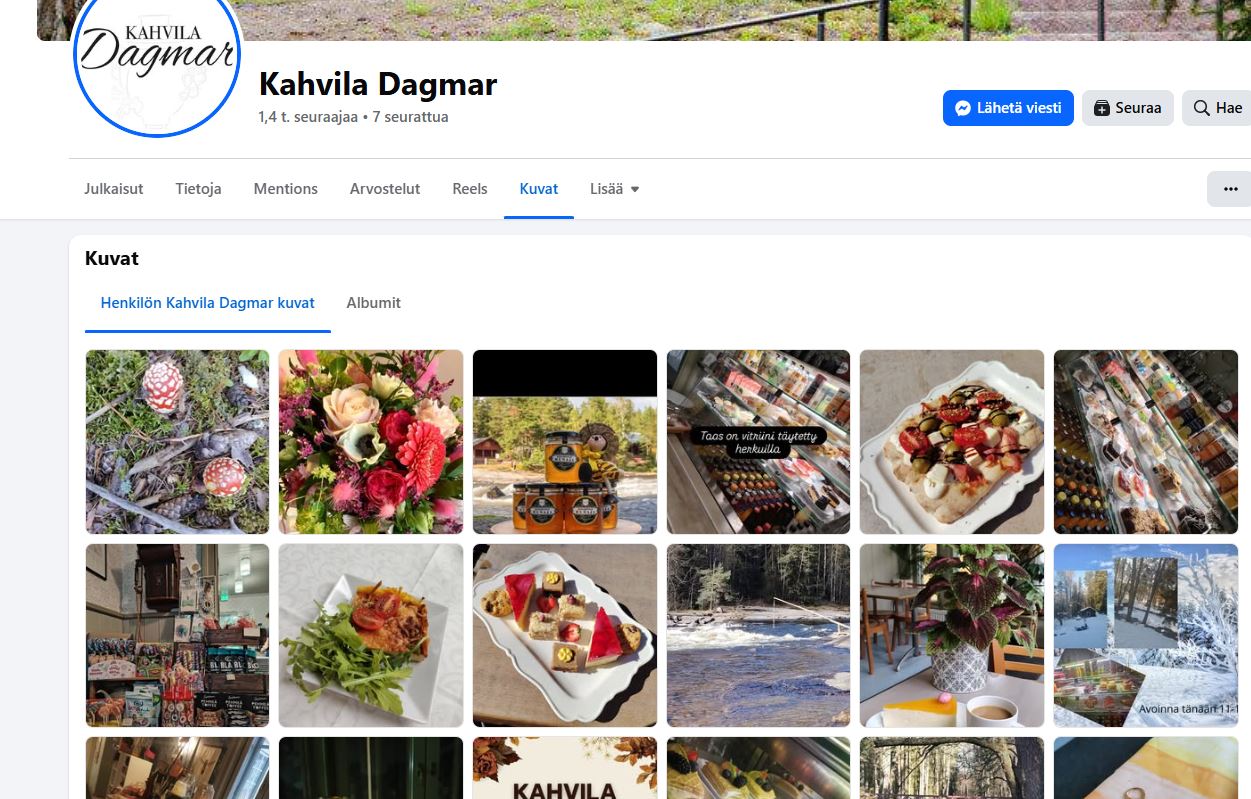 Ajattelin kahvilan Facebook-sivuilta katsoa, että mitä siellä on tarjolla, ja kuvagalleriaa selaamalla tuotteet luulisi näkevän hyvin.