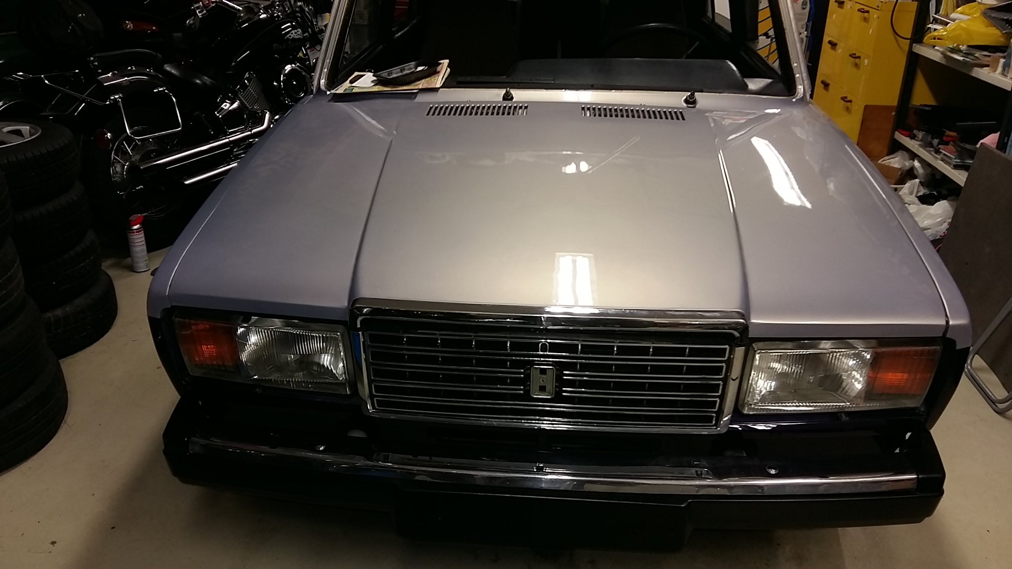 Usean vuoden projekti alkaa olla kohta katsastusvalmis. Loppukesällä koeajettu ja kaikki tuntui toimiva uurastuksen jälkeen. Kaksiväri maalaus metalli violetti/ hopeavioletti sopii auton muotoihin ja linjoihin. Niin ja kattoluukkukin on se kuuluisa Finlandia. Pitää katsastaa ja sit miettiä meneekö ens kesänä myyntiin vai naftaliiniin!