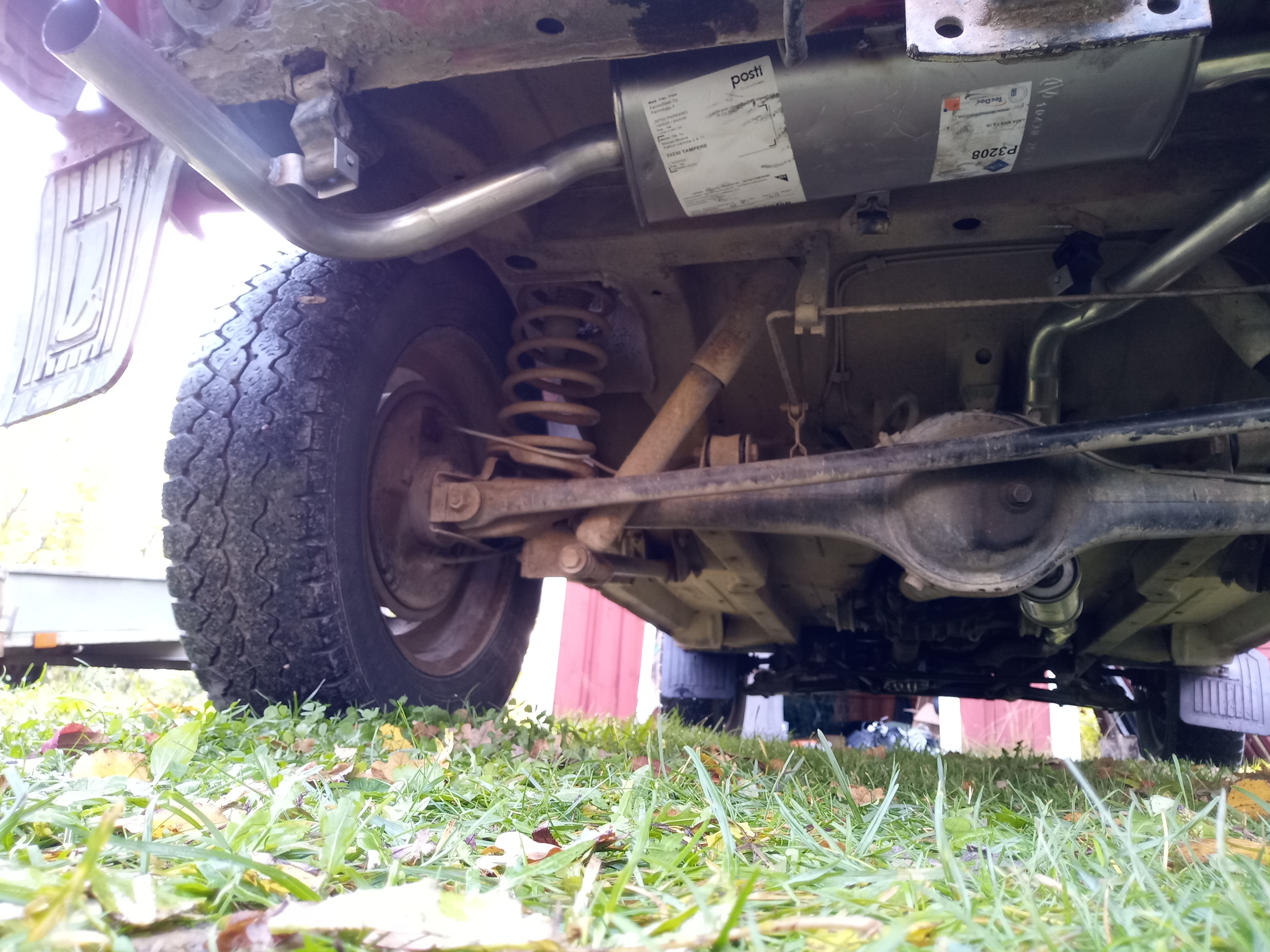 Ja pakoputken tein sitten kuitenkin uusiksi kun tarvikeputkea kolistelin vähän kiveen. Ensimmäistä kertaa tuli kokeiltua pakoputken tekemistä ja lopputulokseen olen kohtuullisen tyytyväinen. Nyt on 2'' putki onnettoman pienillä vaimentimilla että sai kulkemaan niin läheltä koria kuin vain järkevästi oli mahdollista. Äänet on omaan makuun vähän turhan kovat, mutta kyllä niistä peltoreilla selviää.