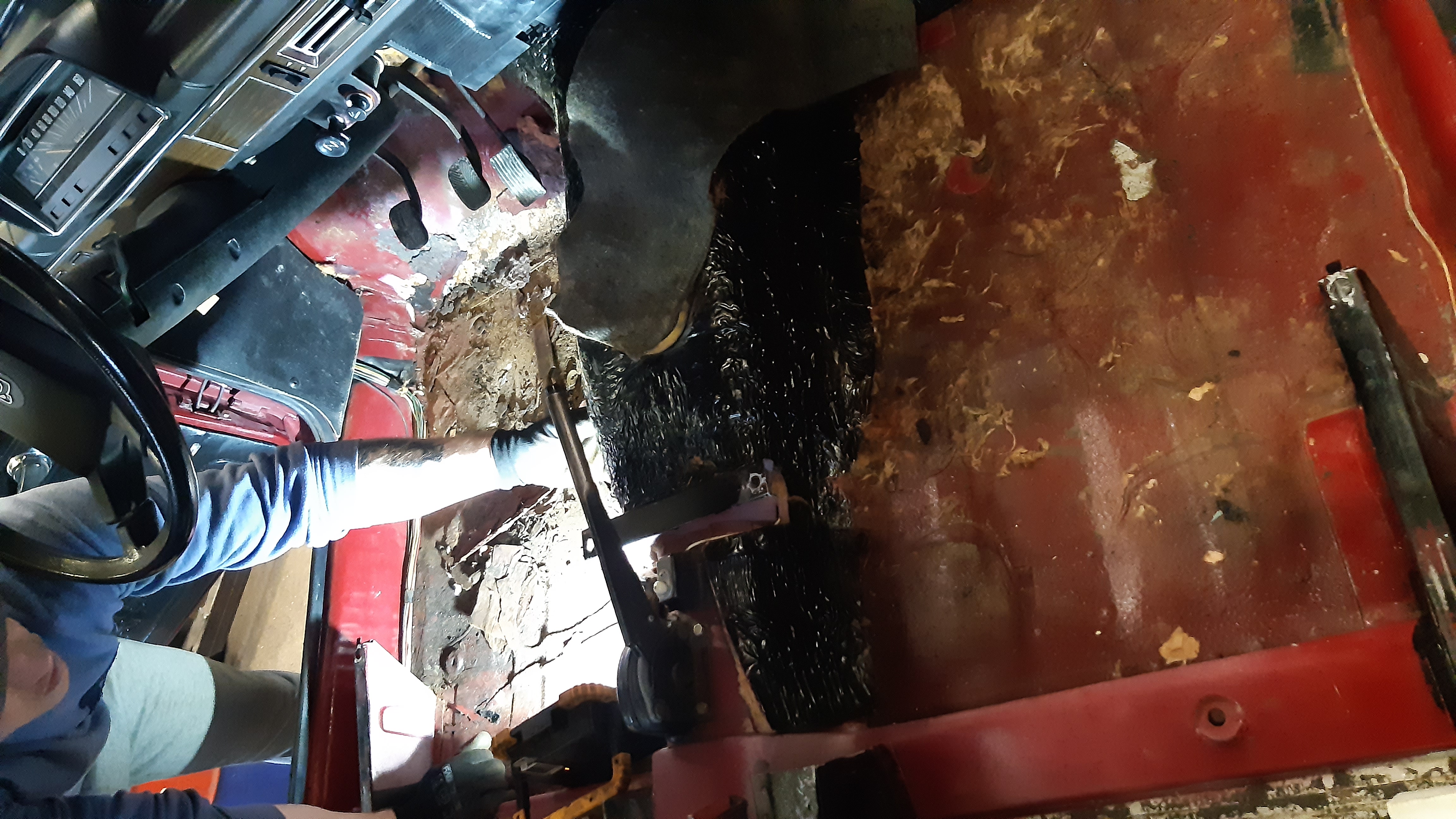 Tänään tuliki auton omistaja myös lapin reissulta rassaamaan sisälattiaa puhtaaks irtomassasta. Pari pikkusormen mentävää reikää löyty takajalkatiloista, muuten ehjä koppa.