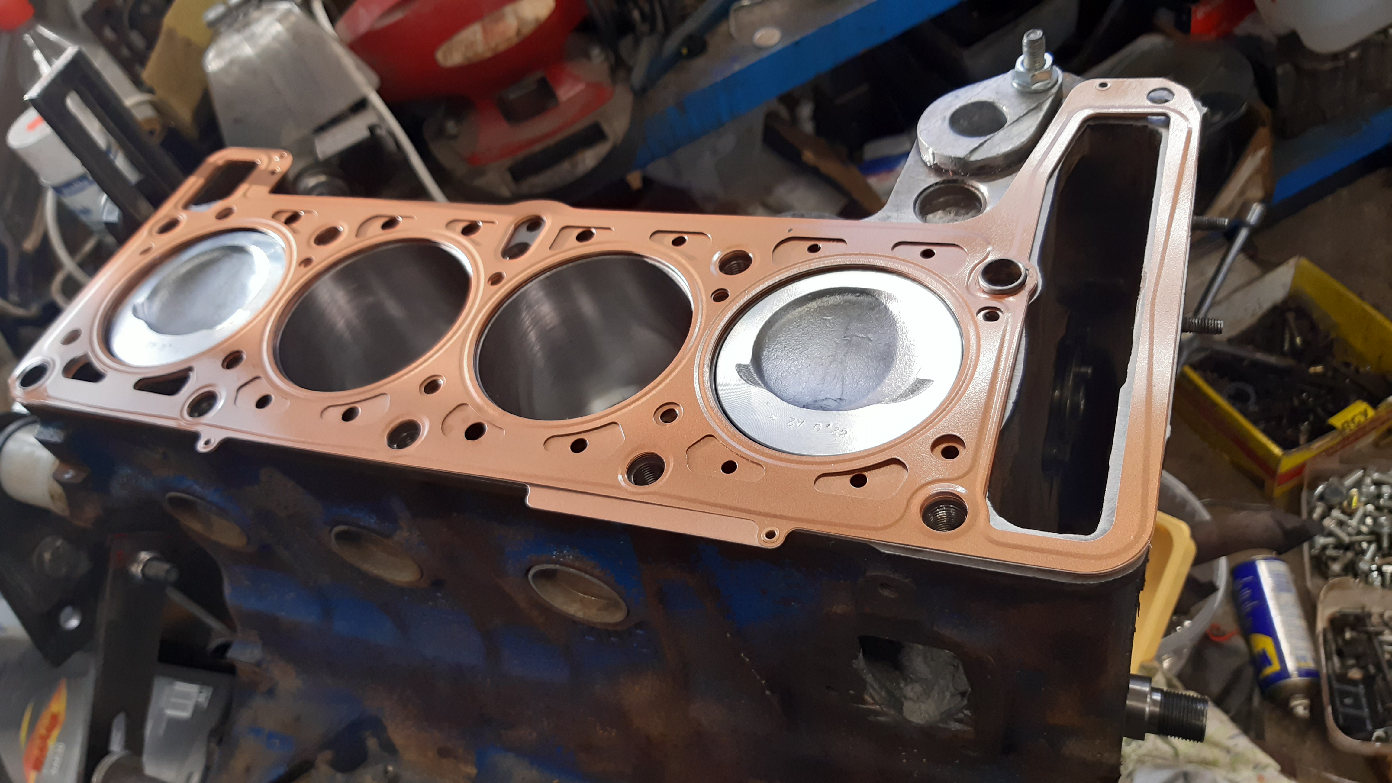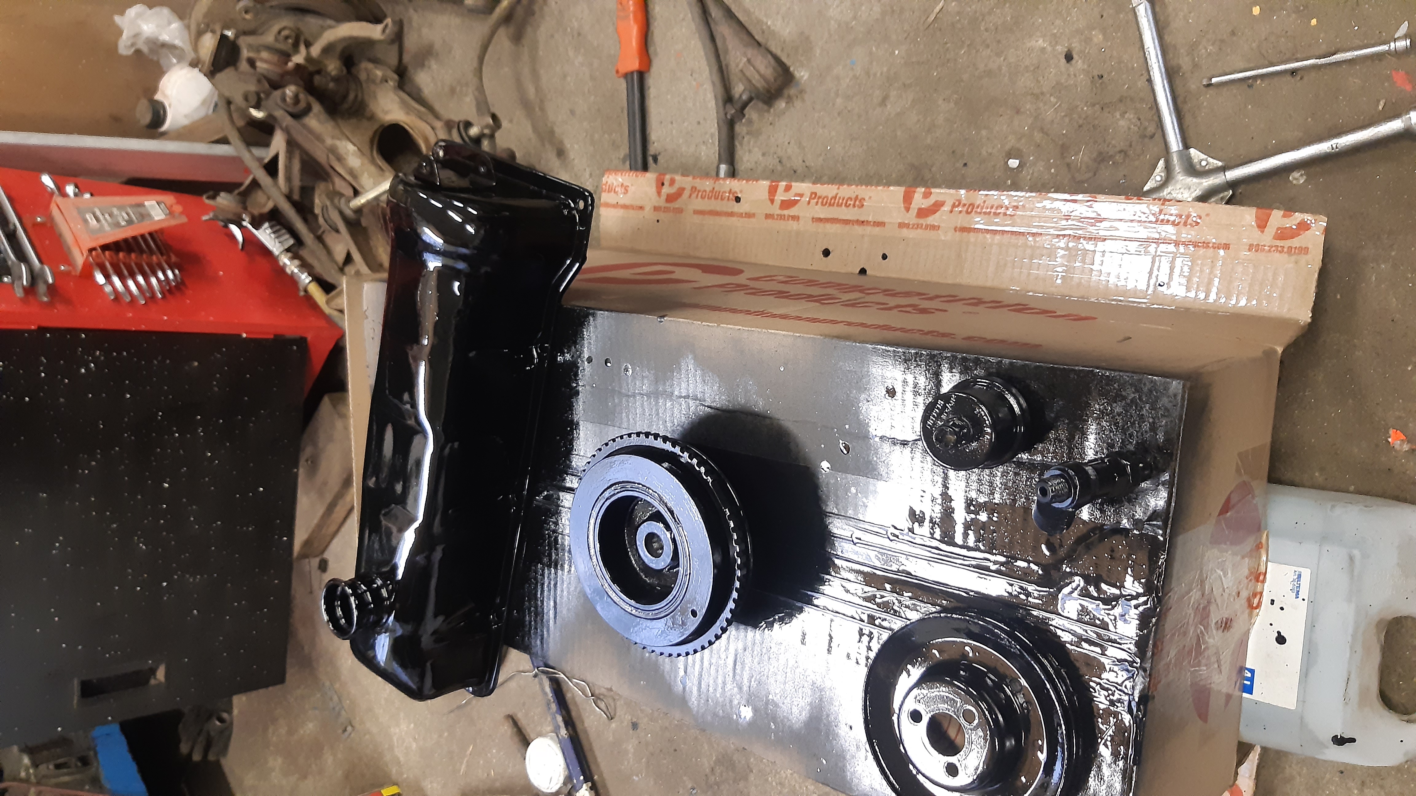 Entisessä koneessa oli melkein uus vesipumppu, sen vaihdoin koteloon ja keräilin maalattavia osia valmiiks auton omistajalle putsattavaks.