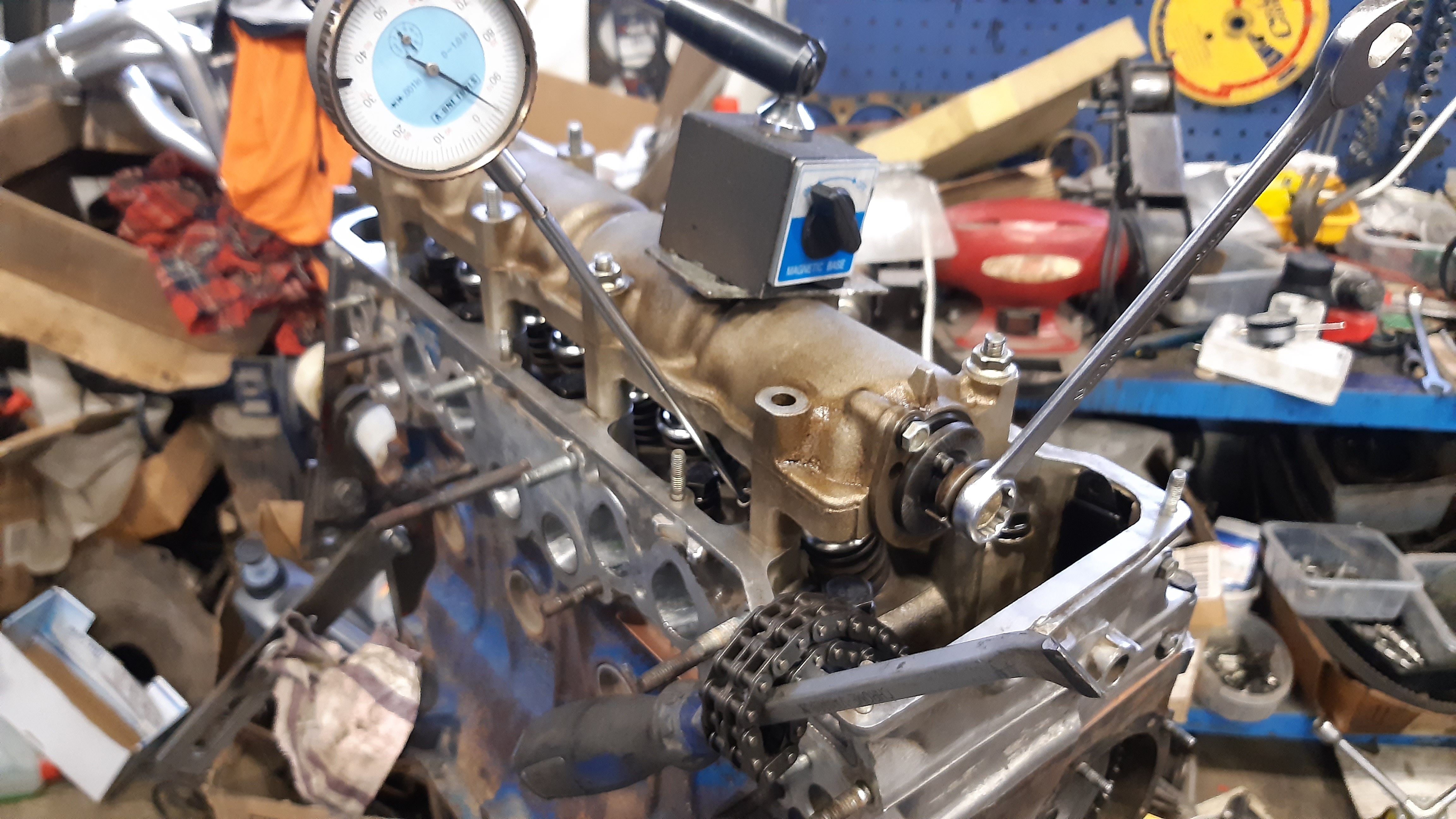 Säädin nokan himpun aikaselle, imu 1,6mm ja pako 1,2mm(ohjearvo 1,4mm molemmissa) ketjun venymisen kompensoimiseksi. Venttiilit tuli myös säädettyä.
