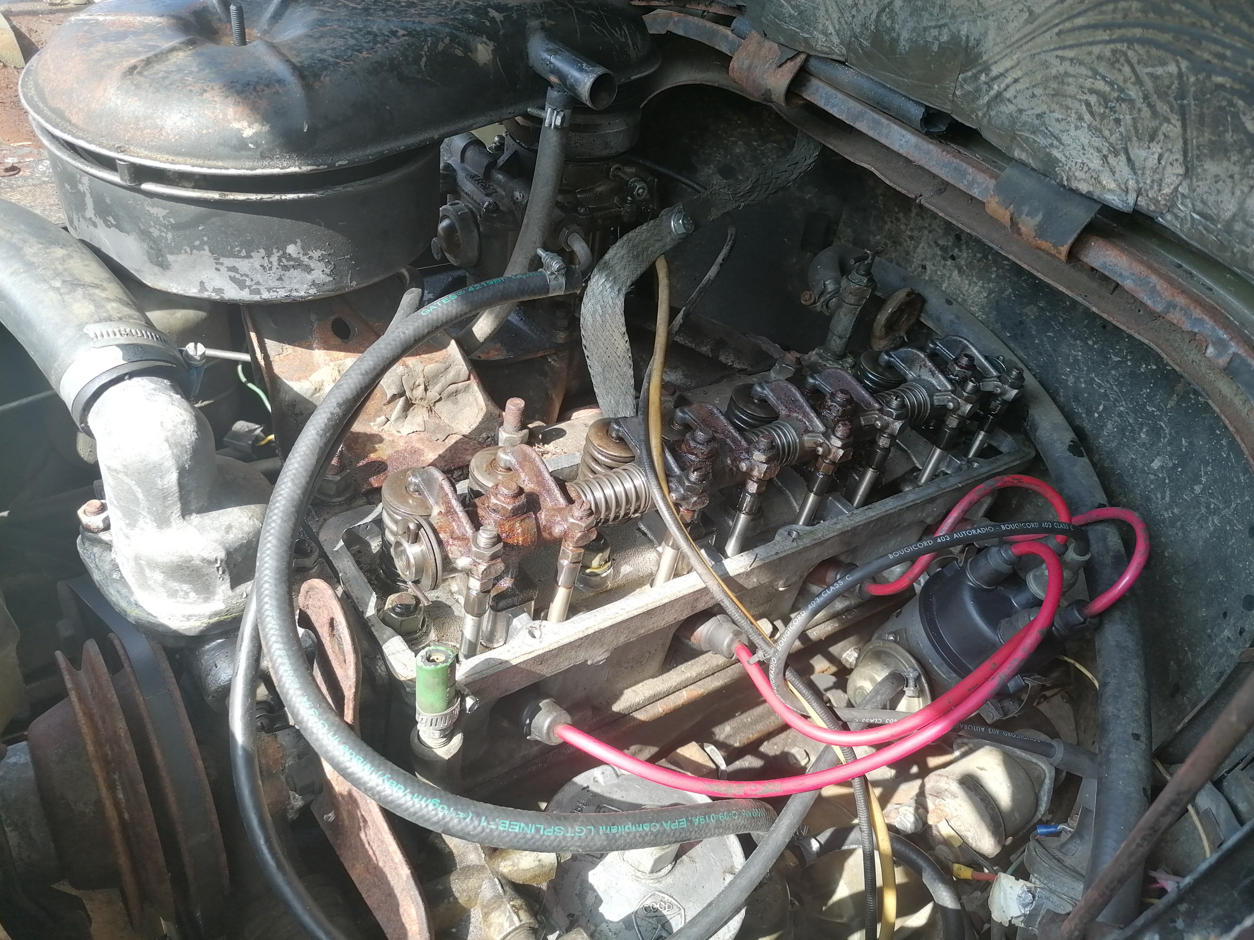 Armeijan huoltovihkon mukaan ensimmäinen moottorinvaihto on tehty n. 1500km kohdalla, jolloin laitettu käytetty moottori tilalle. Ja nykyinen moottori on vaihdettu 2006, jostain on löydetty 24-Volgan moottori, joten hieman enemmän hevosvoimia originaaliin verrattuna mutta hyvin pitkältihän nämä on samanlaisia keskenään. Nykyisen moottorin kilometrimäärää en tiedä. Kaasari on K126G -mallia ja kärjetön sytytys näyttäisi olevan. ja löytyy myös se vauriovärähtelijäkin mikäli sytytysboksi hajoaa. Öljyjen seassa tuli muutama pieni muovinen pala, eli ilmeisesti jakopään hammaspyöristä vähän murtunut.