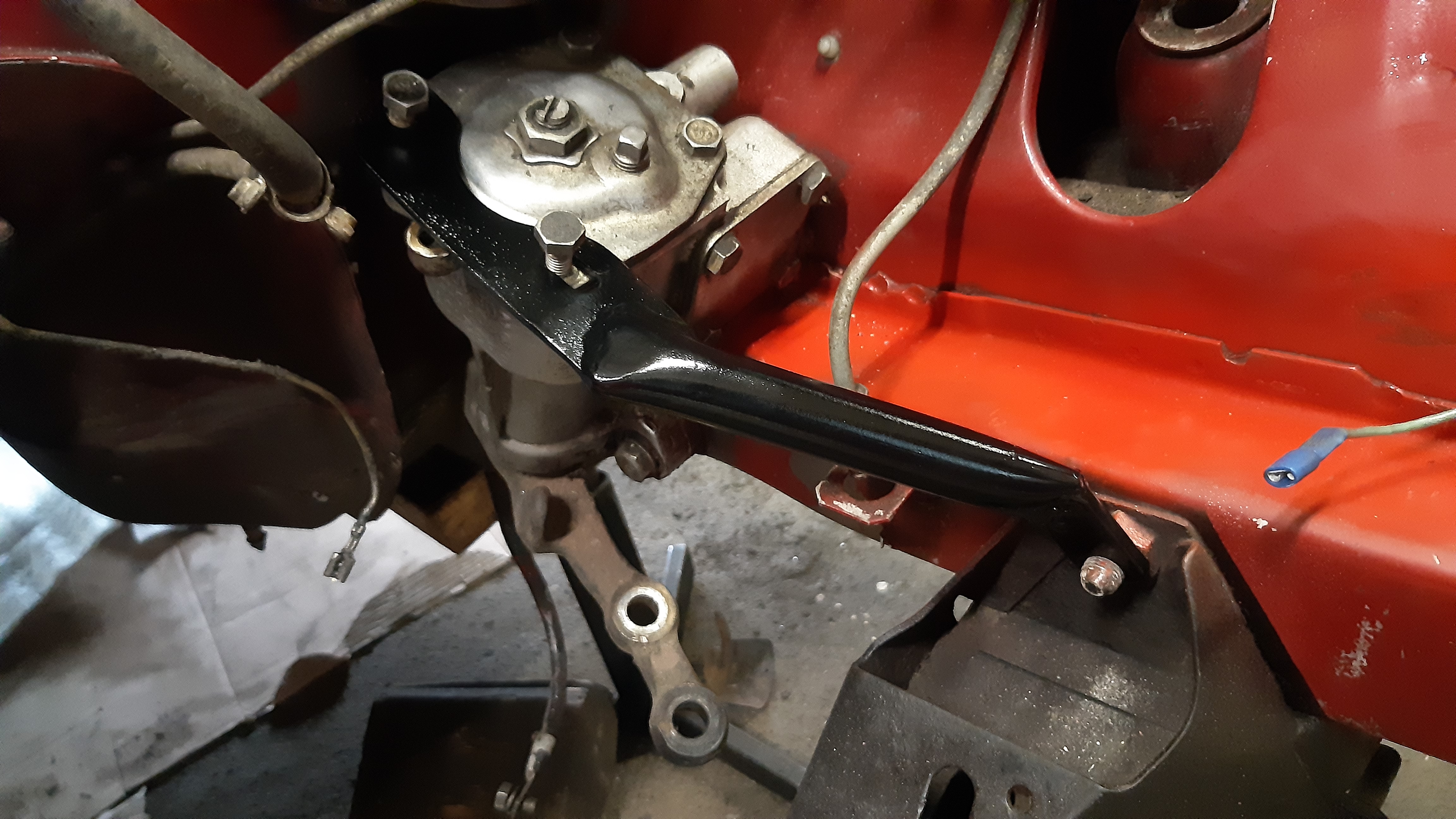 Simpukan tuen modifioin käypäseks ja vetäsin mustan maalin päälle. Kaasupolkimen laitoin paikalleen ja porasin vaijerille läpiviennin. Polinta piti vähän taivuttaa, että ei ota kardaanitunneliin.