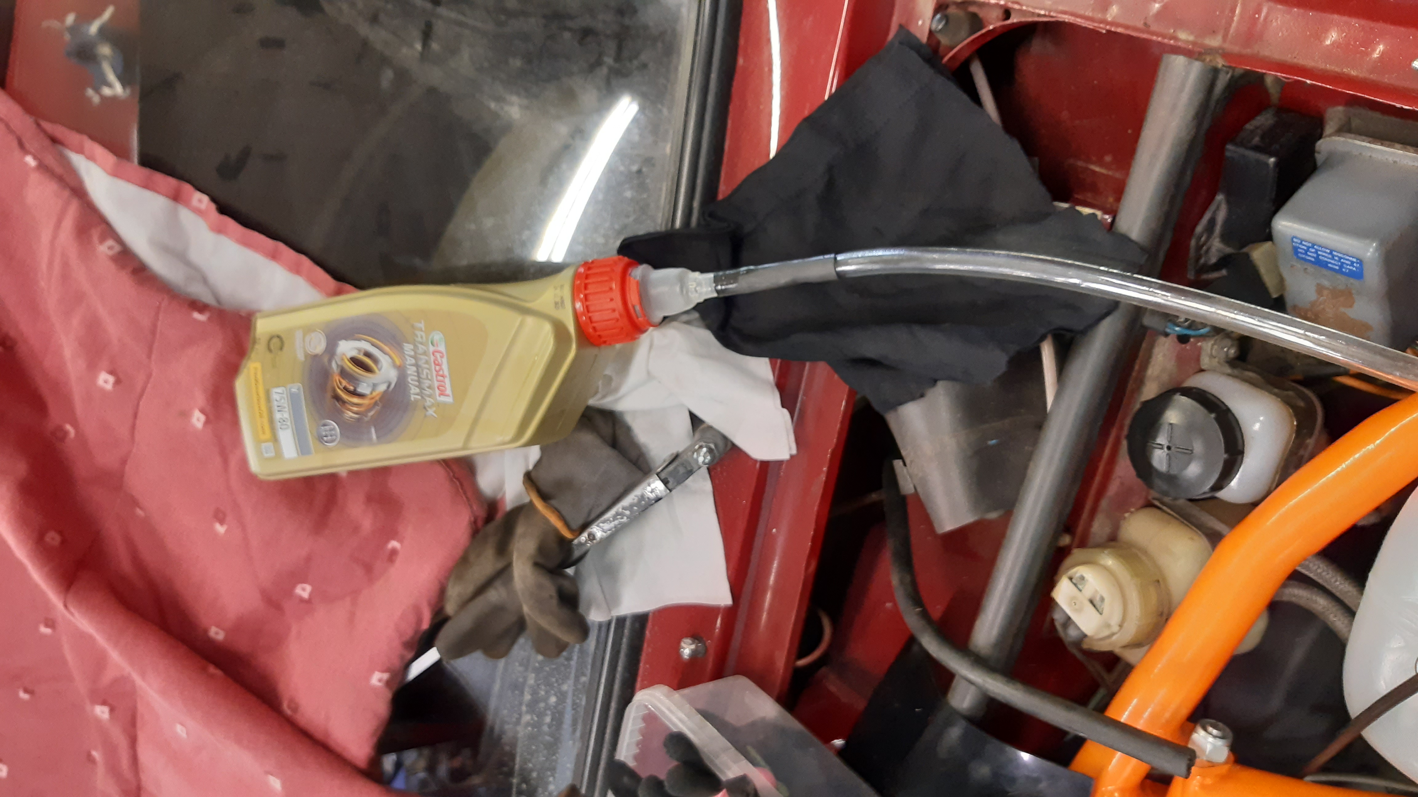 Omistaja kävi vaihtamassa ruiskun tankin paikalleen ja sarjan mukana tuli koko pensaputkisto, joka asettui pienen vääntelyn jälkeen entisen putken paikalle. Samalla laittoi akun kaapelin sähköputkessa kardaanitunnelin toista puolta pitkin. Sisustaan tuli eristematot ja penkinpäälliset, myös jarruosat ja muuta puuttuvaa tuli samassa paketissa.