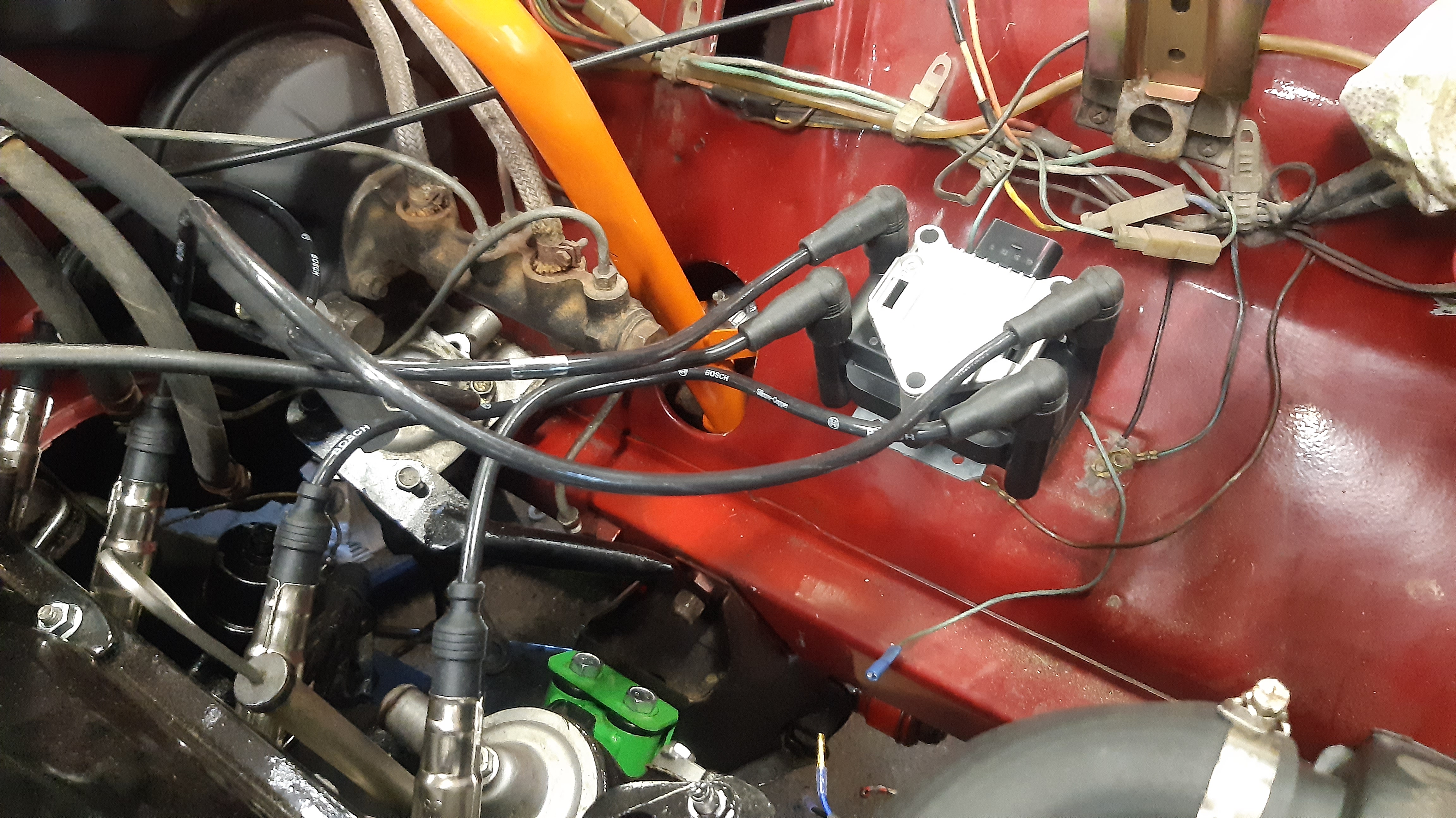 Tuo uudemman takapotkun sähköflekti ei tietysti mahtunu paikalleen, ottaa jakokopassa olevaan kampitunnistimen ulokkeeseen kiinni😬