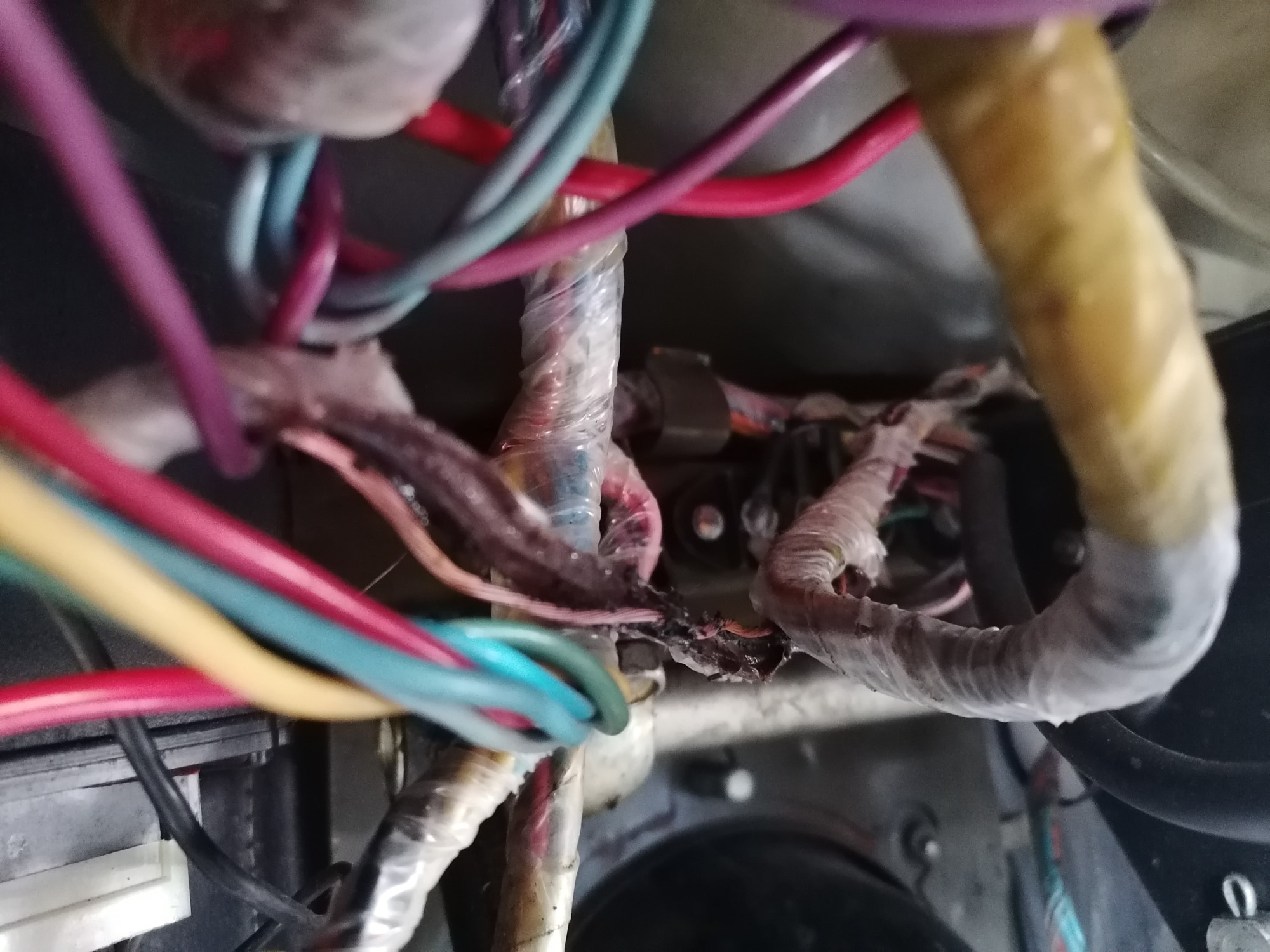 Hyvä tuuri kävi, kun vaikka yksi johto paloikin niin saman johtonipun muut johdot säästyivät, hieman oli joistain kohdin toisiinsa kiinni tarttuneet mutta ei muita vaurioita. Lisäksi paloi virtalukolle menevä johto, josta johtui ensimmäinen epäilys virtalukkovikaan mutta taitaakin oikeampi syy olla irrallaan pomppinut eberi joka nojasi johonkin releboksiin ja juurikin tämän sulaneen johdon liittimeen.