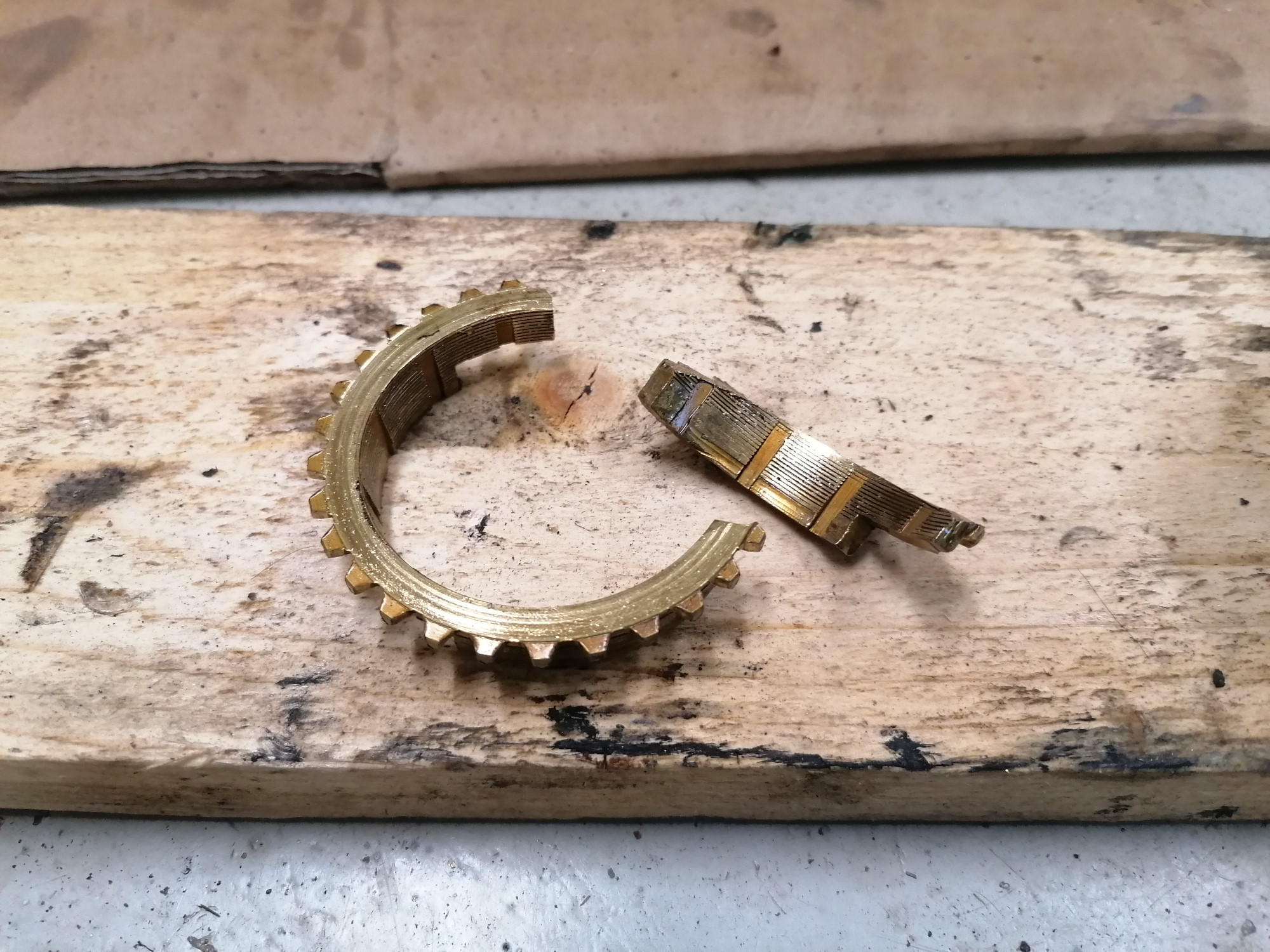 Sitten nelosvaihteen hyppimisen takia avasin laatikon ja synkrosta puuttui ihan pala, eli lootaremonttiin pääsee. Muutenhan tämän laatikko näyttää aika simppeliltä etenkin kun vain kolmos- ja nelosvaihteet on synkronoituja.
