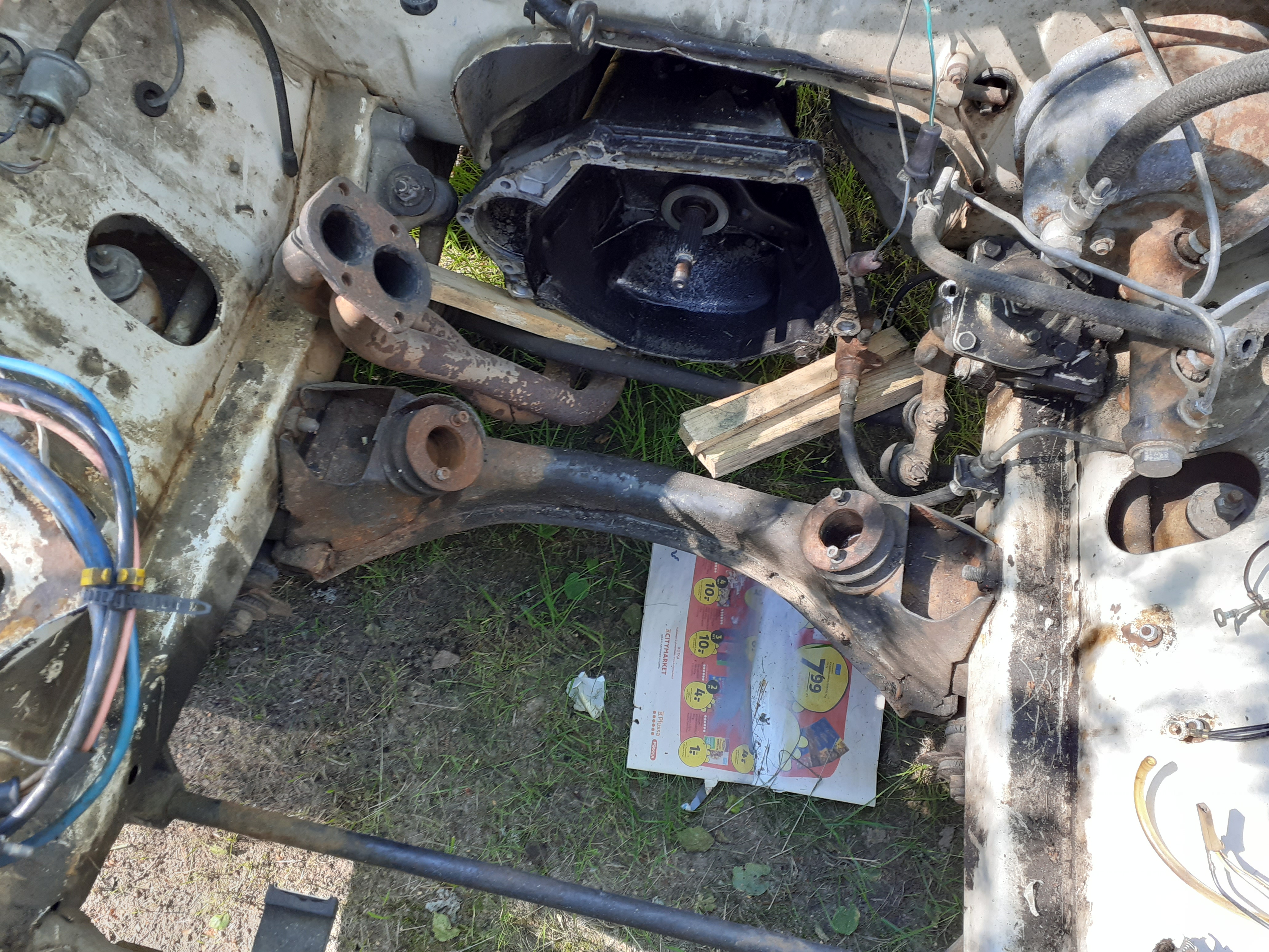 Noniin, tämmöstä olis nyt tapahtunut. Auto on saatu käyntikuntoiseksi ja se liikkuu eteen taakse ja pysähtyykin. Eli se kaikki aika ja vaiva ei ole ihan hukkaan mennyt. Mutta ongelmia on edelleen. Pumppu vuotaa jäähdytinnestettä, sekä: imusarjan alueella näyttäisi myös tihkuvan nestettä. Myös lämppärin letku vuotaa. Vaihtelen tuossa jossain vaiheessa tivisteet ja kiristän kunnolla. Mutta yksi asia huolettaa, vaikuttaisi nesteet menevän sekaisin, sillä kun otin öljyntäyttökorkin pois, niin siinä oli valkoista ns. "jugurttia" sekä öljyssä vaikuttaisi olevan vettä/nestettä. Pakoputkestakin tulee vettä/kosteutta reilusti. Uskoisin että: voisi korjaantua kun vaihdan imusarjan tiivisteet yms. mutta hieman huolestuttaa että ongelma voi olla jossain muuallakin.