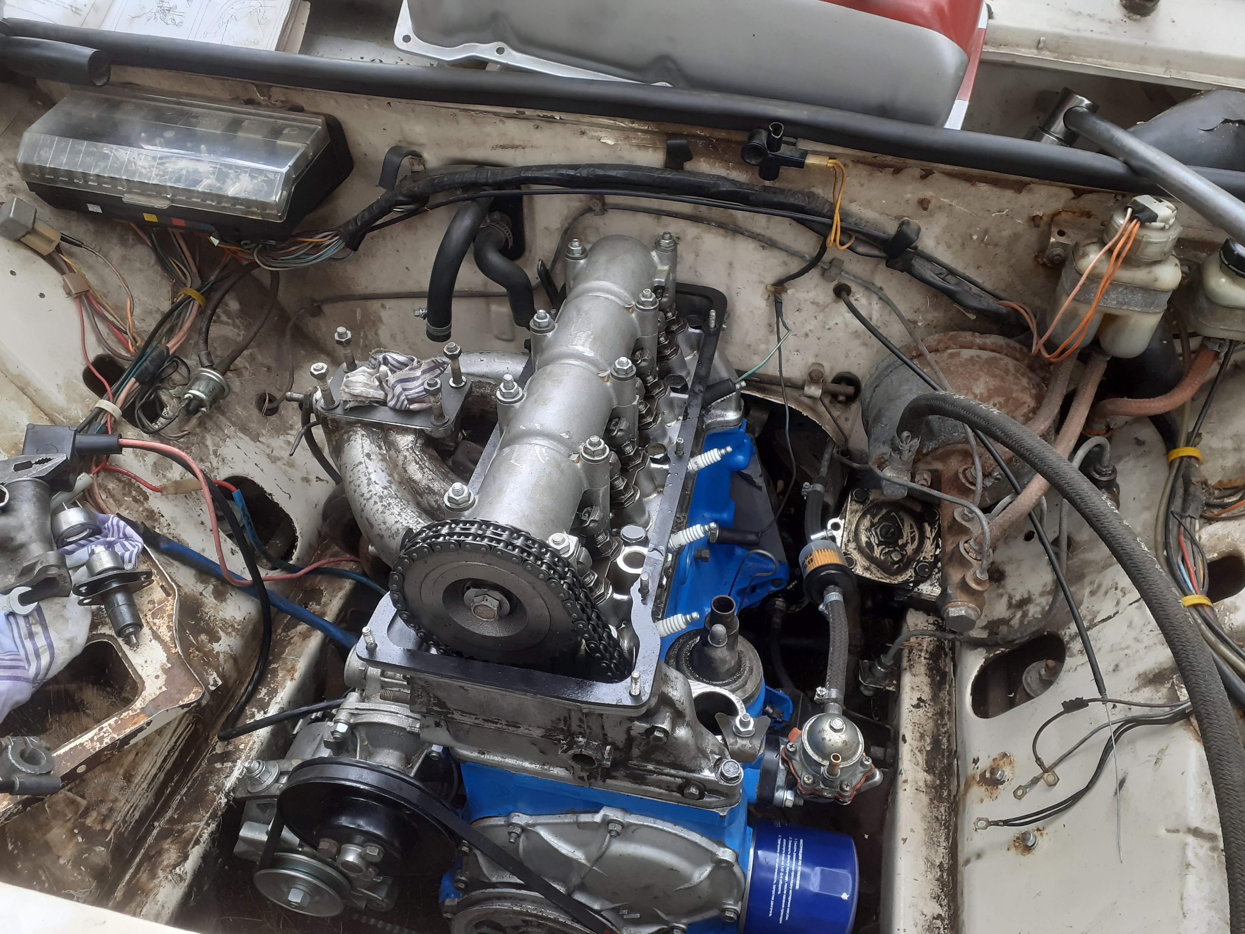 Päivitellääs kuulumisia tännekin, vaikkei nyt mitään sen kummempaa ole tapahtunutkaan. Keväällä 2022 otin auton taas ulos tallista ja aloittelin taas hommat. PV:llä siirryttiin taas normilomarytmiin, niin pääsi aina viikonloppuisin kotio rassaamaan Ladaa. Pääasiassa tuli tehtyä loppukasaamista ja muita pieniä juttuja. Sekä tuli yritettyä säätää nuo ajoitukset, venat yms. Mutta kun ei tieto ja taidot enään riitä, niin asia eteni erittäin hitaasti ja lopulta taas jämähti. Kesällä sitten pääsin reserviin ja tuli tehtyä muita hommia, joten senkin puolesta projekti ei paljoa edennyt.