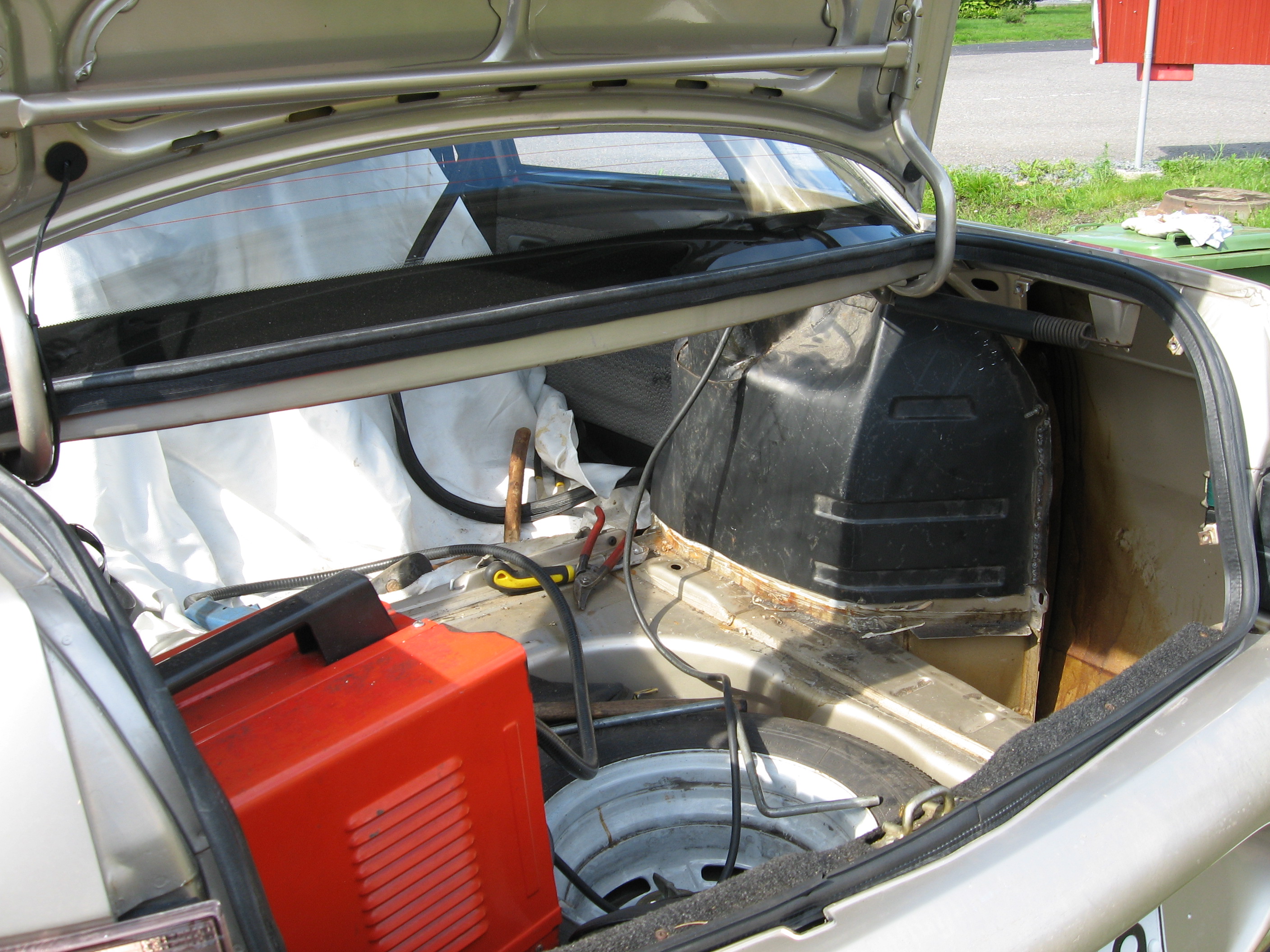 Piti ruostelaikut poistaa ja fiksata auto yksiväriseksi. Takapäästä löytyi tälläinen yllätys (ehdotuksia mitä voisi tehdä):