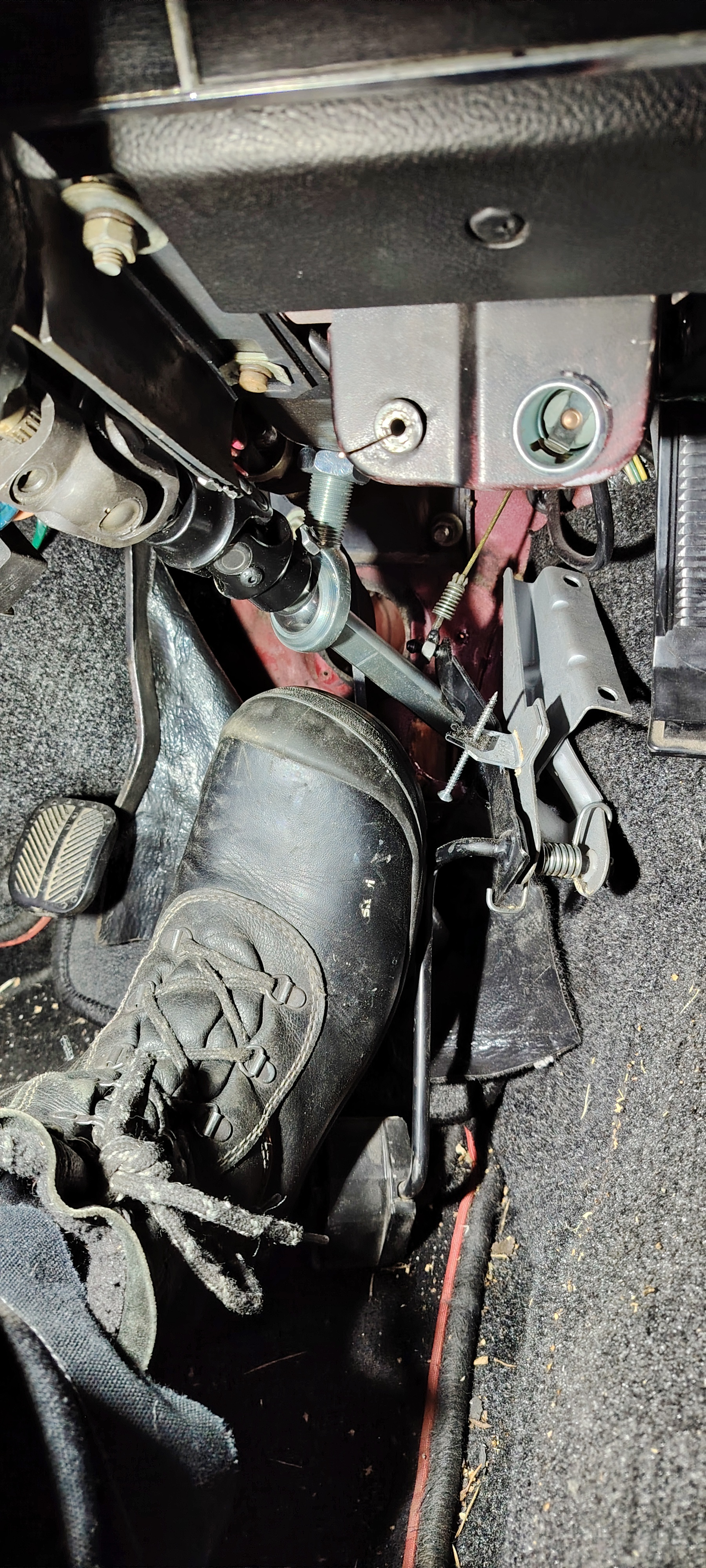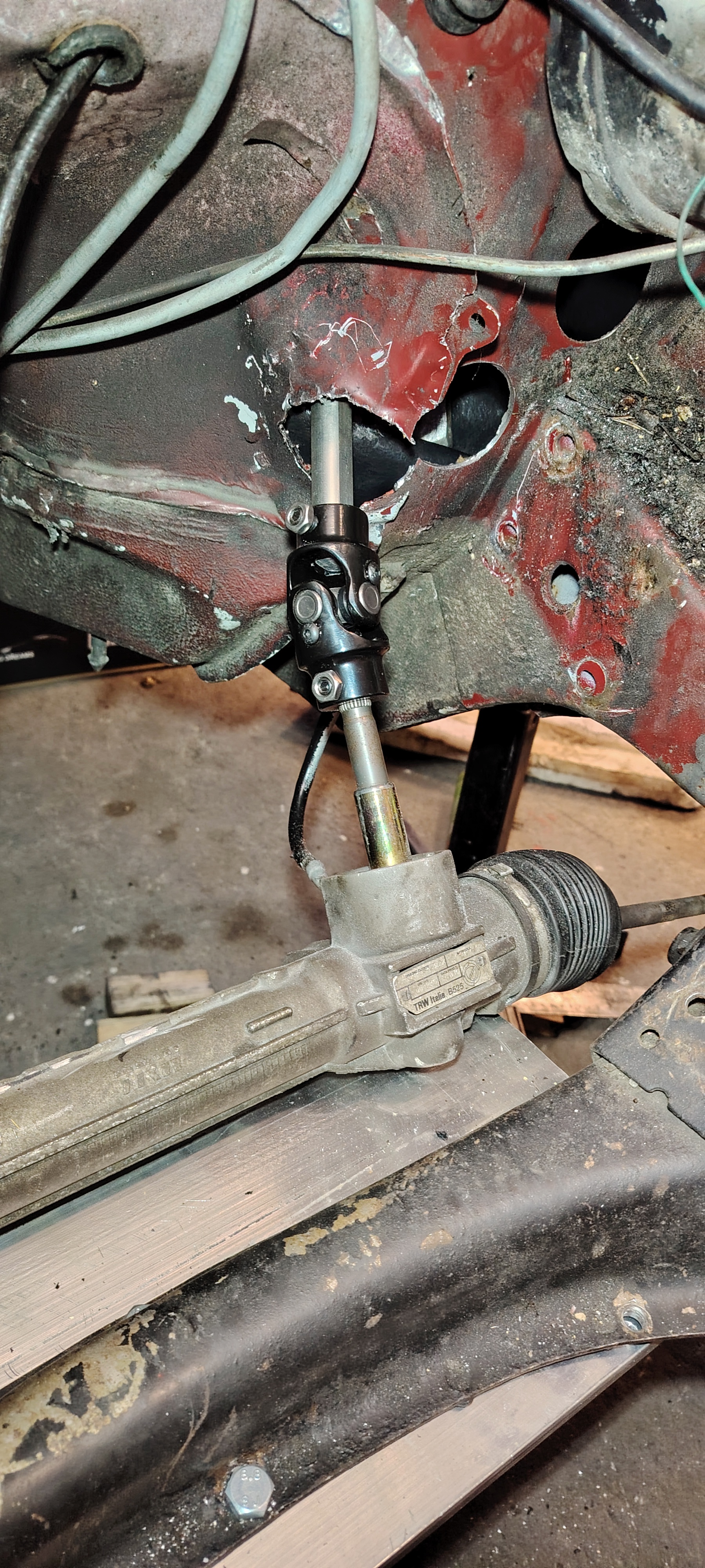 Hammastankoon löysin tuollasen mustangin tarvike ohjausakseli sarjan, siinä oli käypänen boori hammastankoon. Ohjausakselin paikka valikoitui nyt tuohon kaasupolkimen kohalle ja menee siitä jarrupolkimen yli rattiakselille järkevässä kulmassa.