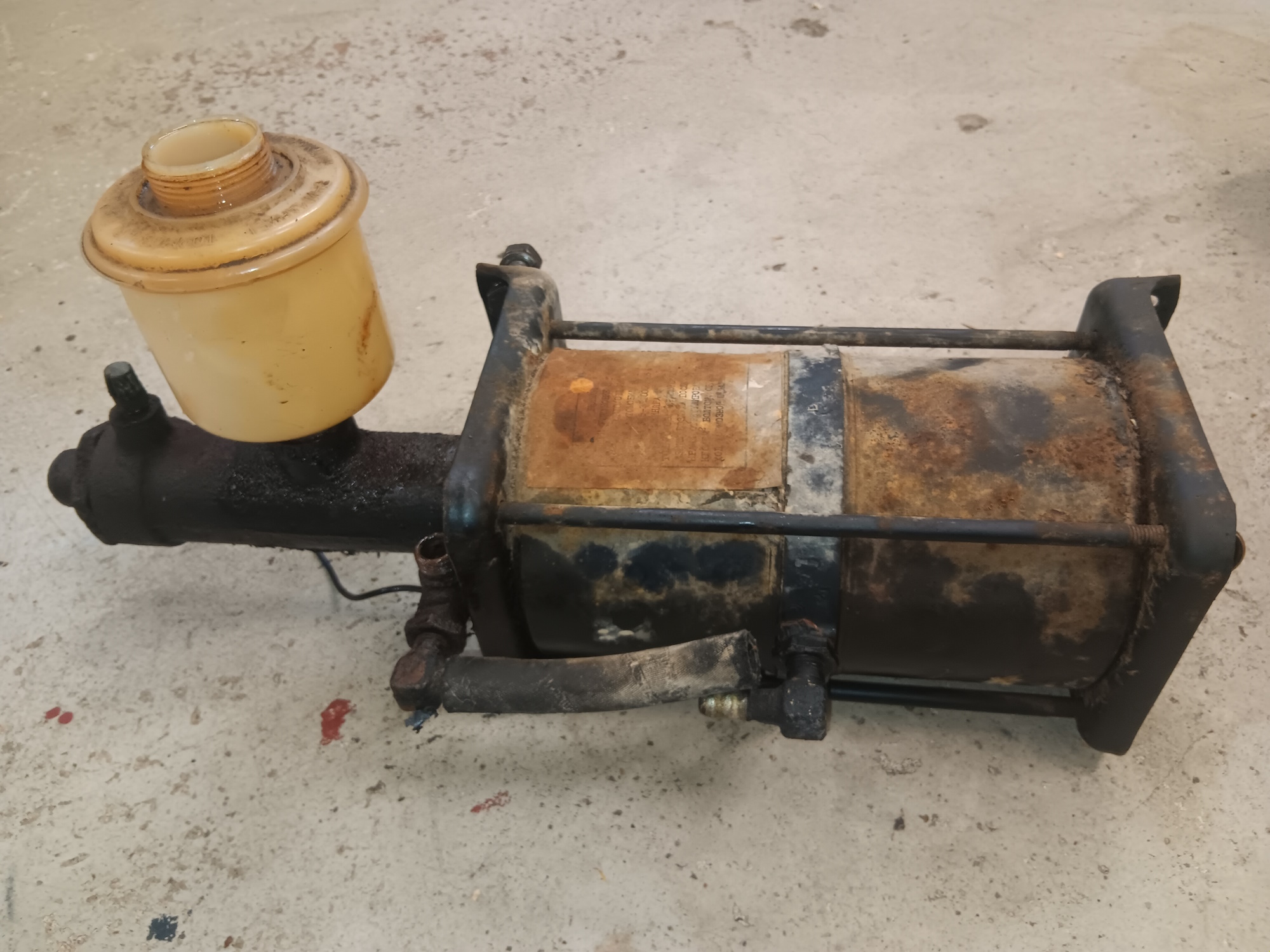 Sen verran jarruja tuli jo rassattua, että toisen piirin jarrupääsylinteri vuoti. Luulin, että on helppo homma vaihtaa mutta pitikin purkaa koko paineilmatehostin auki. Mikä kyllä oli ihan hyvä, kun oli sinnekin päässyt sitä jarrunestettä ja ruostetöhkää. Polonezin jälkeen mukavan yksinkertaista vaan avata pultteja ja niihin pääsee helposti käsiksikin.