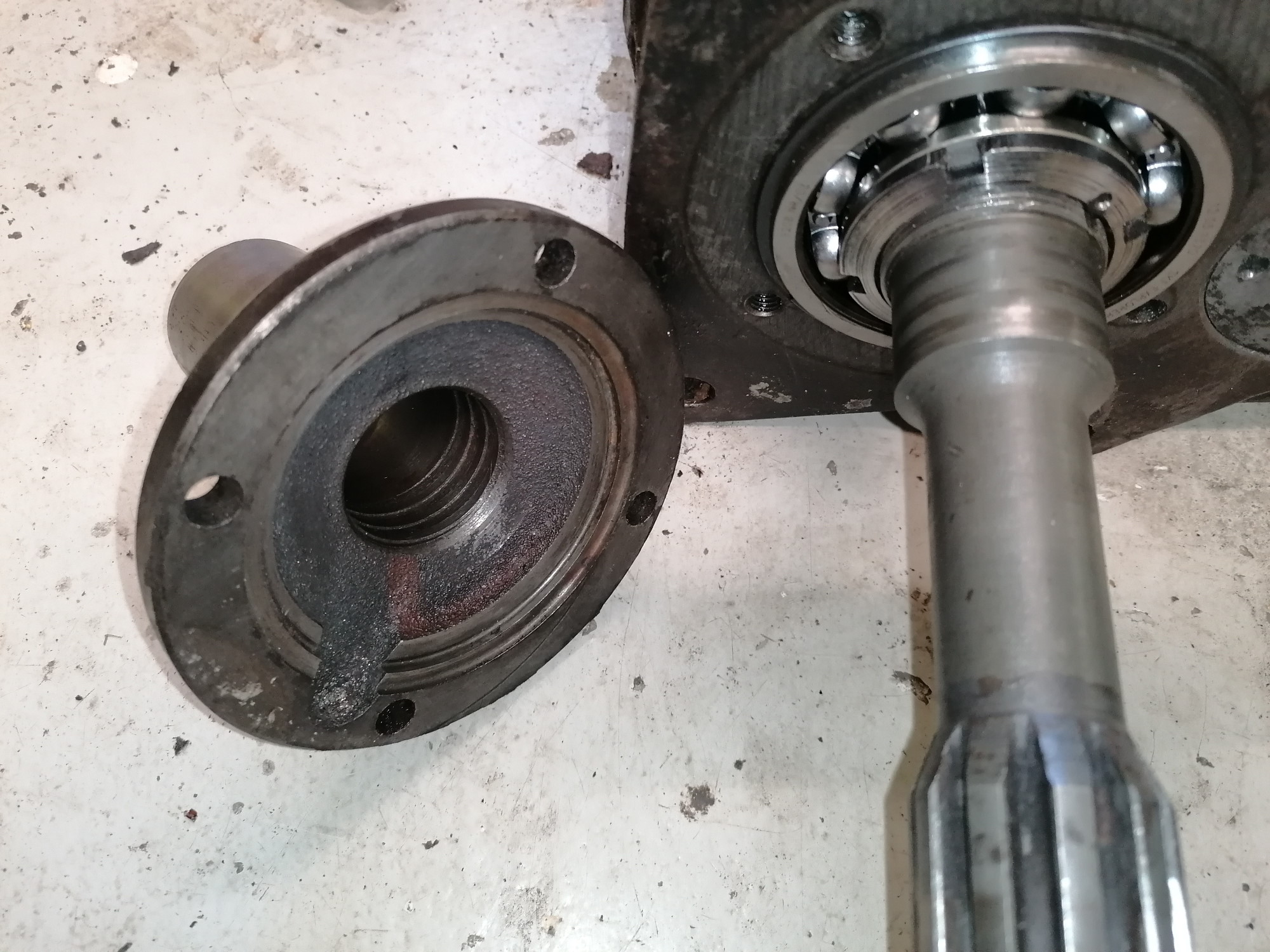Öljyvuodon syytä en oikein vielä varmaksi tiedä. Kytkinakselilla kun ei ole edes mitään stefoja, vaan ainoastaan spiraalimainen ura minkä pitäisi pitää öljyt lootan sisäpuolella.
