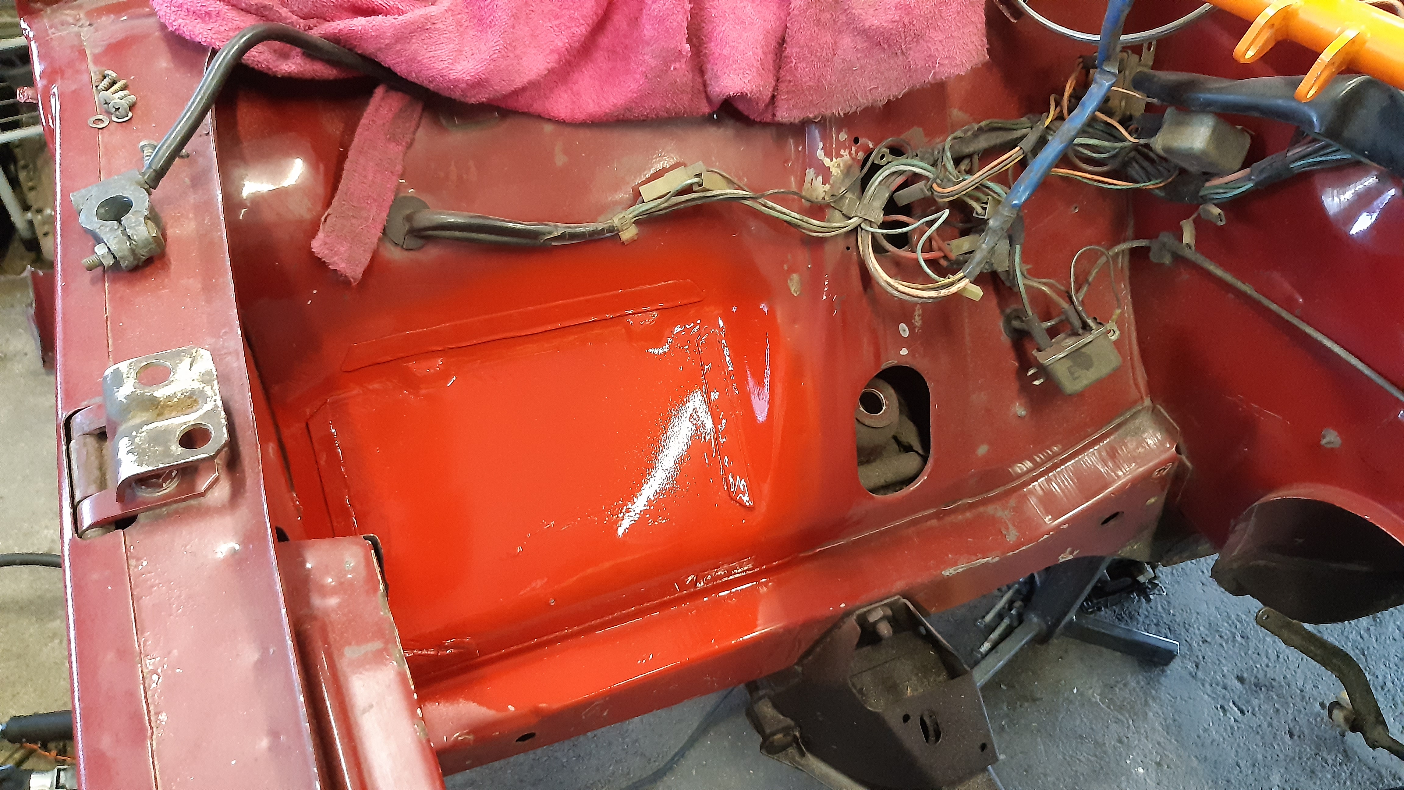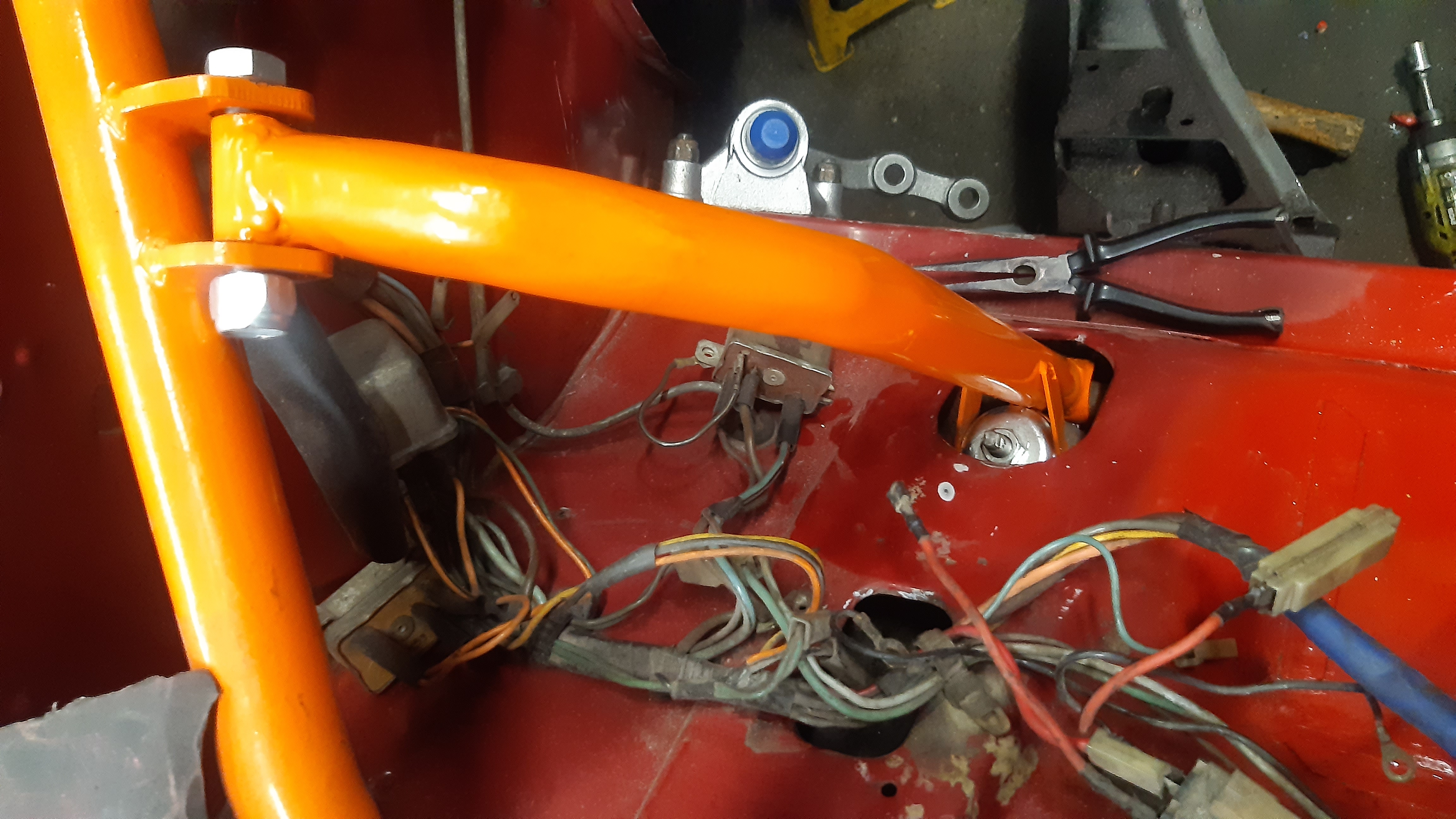 Simpukan tuen modifioin käypäseks ja vetäsin mustan maalin päälle. Kaasupolkimen laitoin paikalleen ja porasin vaijerille läpiviennin. Polinta piti vähän taivuttaa, että ei ota kardaanitunneliin.