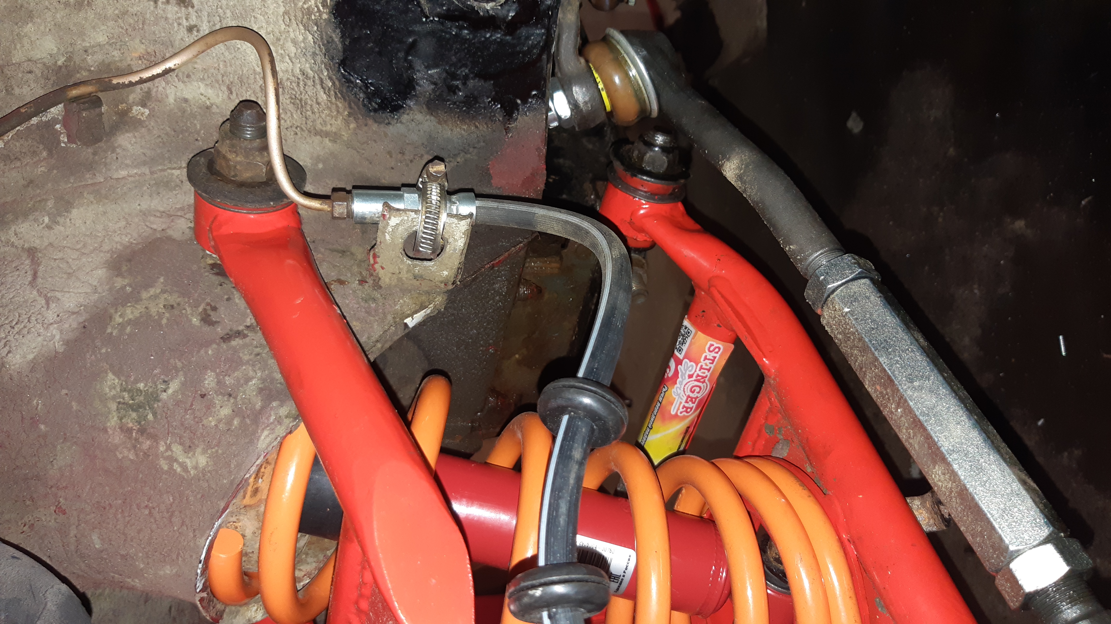 Sinisen etuvakaajan maalasin punaseks, ku suurin osa muistaki alustan osista on punasia.