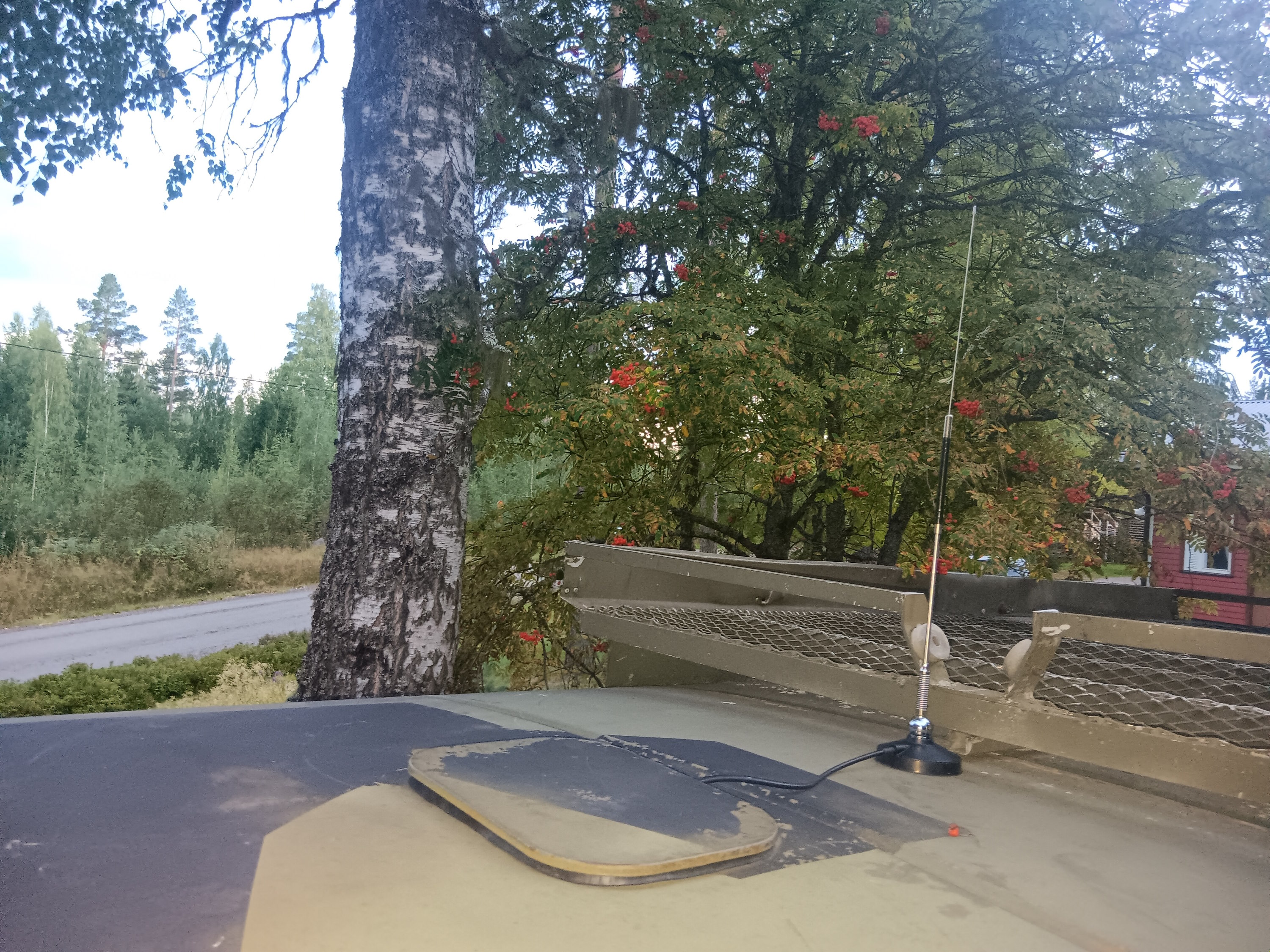 Kesälomalla tuli asennettua La-puhelinkin paikalleen ja idän ihmeissä Simpan kanssa kokeiltiin, että toimii myös. Antennipiuhan vedin katon huoltoluukun välistä, kun vähän viilasin pellin reunaan lovea ja samalla vaihdoin paremman tiivisteen, niin nyt ei sadevedetkään vuoda sisälle. Ja jos joskus asennan vielä sivulle työvalot niin tulee varmaankin vedettyä niidenkin johto samaa reittiä. Radiohan oli joku parinkympin heräteostos La-miitissä kun sellainen Uuraisilla joskus oli ja antenniksi valitsi tollasen lyhyen, ettei hajoa offroadissa, Idän Ihmeissä sain myös jarrukengät tähän, mutta toisin kuin luultiin, niin paketissa olikin vain takapyöriin kengät ja akuutimpi hätä oli etupyörien jarruilla (takapyörän takimmainen kitkapinta on lyhyempi, muuten kengät on samat). Olin tietty jo ehtinyt aloittaa tallissa purkamaan jarrut ennen kuin avasin paketin. Onneksi ei ollut kiire ja isän Ooppelikin meni leimasta läpi, niin sai Uazi olla tallissa levällään. Seuraavana viikonloppuna löytyi sitten Tampereelta kokonainen kierros kenkiä ja kenkienkiinnityssarja sekä varalle ostin vielä kaikki sylinterit. Sovin vielä osien haun samalle päivälle kuin Siurossa oli se Ladakokoontuminen, niin ei mennyt ihan pelkäksi varaosienhakureissuksi ajelu Tampereelle.