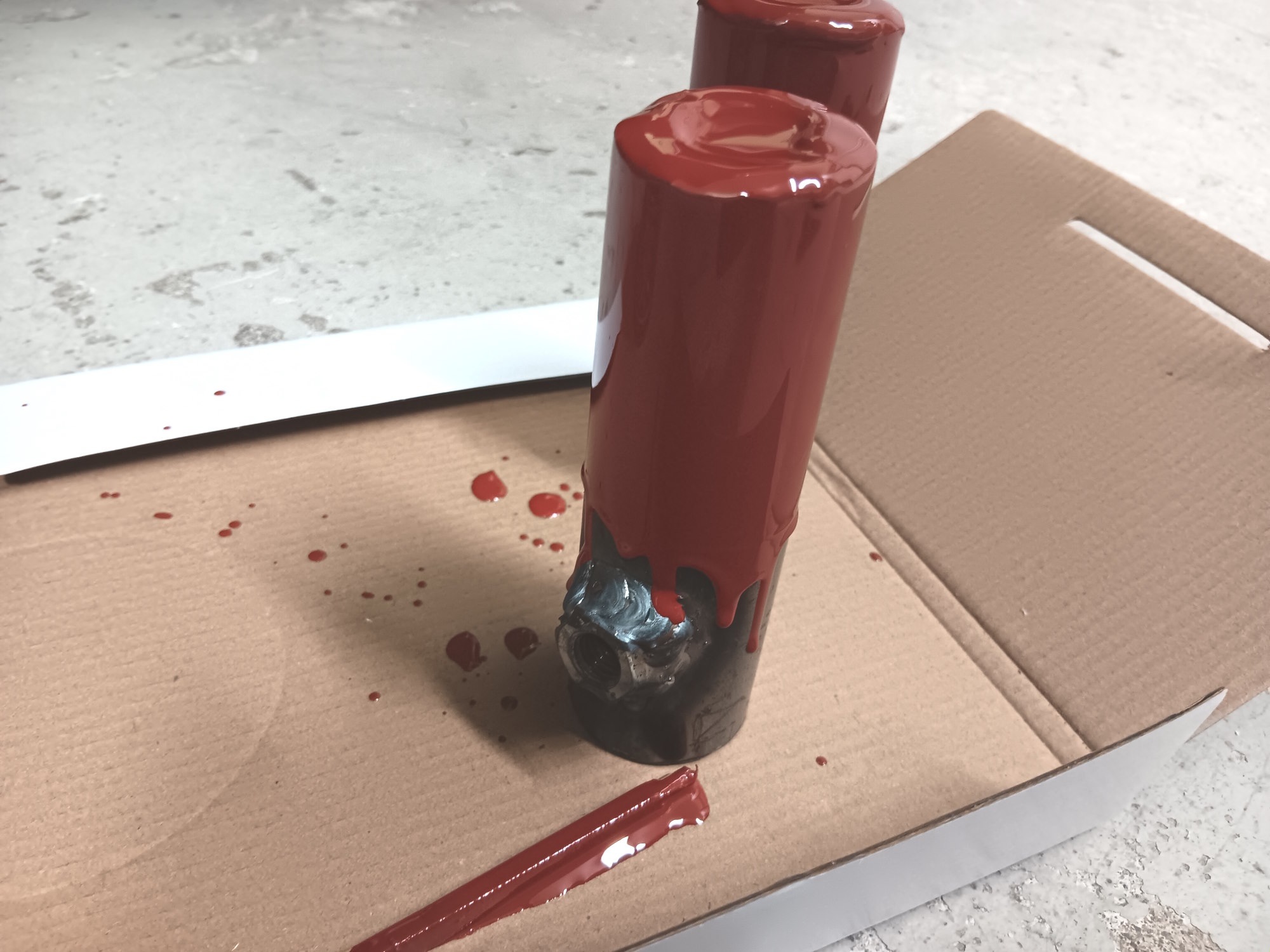 On vielä jäljellä samaa akselimaalia millä combin taka-akselin maalasin. Uazin akselihan täytyy katkaista että saa perän irti joten helpompi etsiä uusi akseli tilalle jos vaan löytyy,