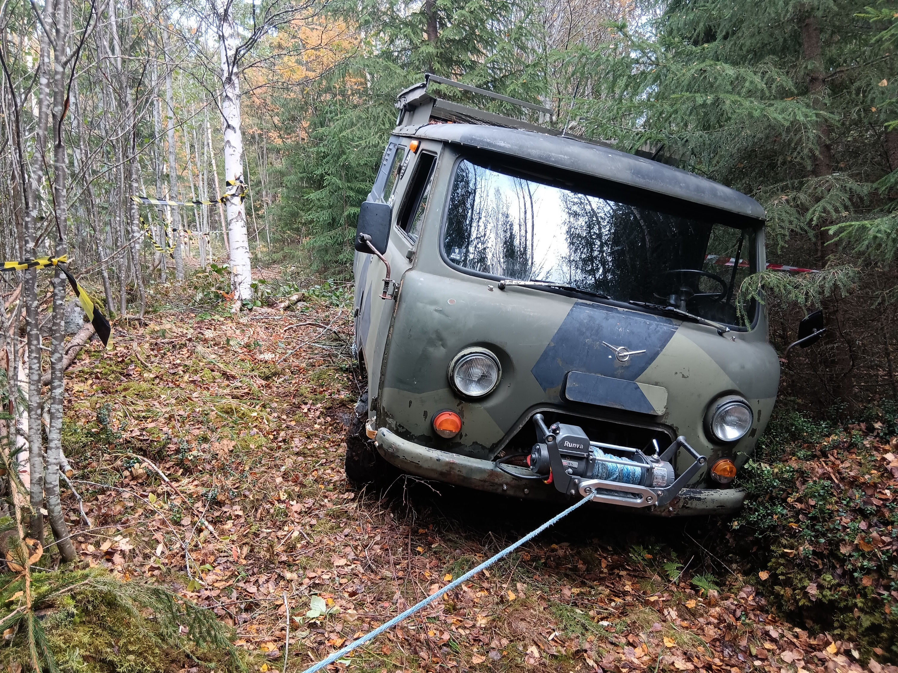 Tänä vuonna oltiin saatu lupa toisellekin reitille, joten ajettavaa riitti. Illalla vielä pienellä porukalla käytiin tapahtuman jälkeen ajamassa syvemmällä metsässä ja märemmissä paikoissa ja sitten tuli taas vinssille käyttöä mutta koskaan aiemmin ei näin hyvin ja nopeasti ole Uaz siellä edennyt. Joko taito karttuu tai sitten vaan oli niin kuivat kelit ja hyvin toimiva kaasutinkin auttoi.