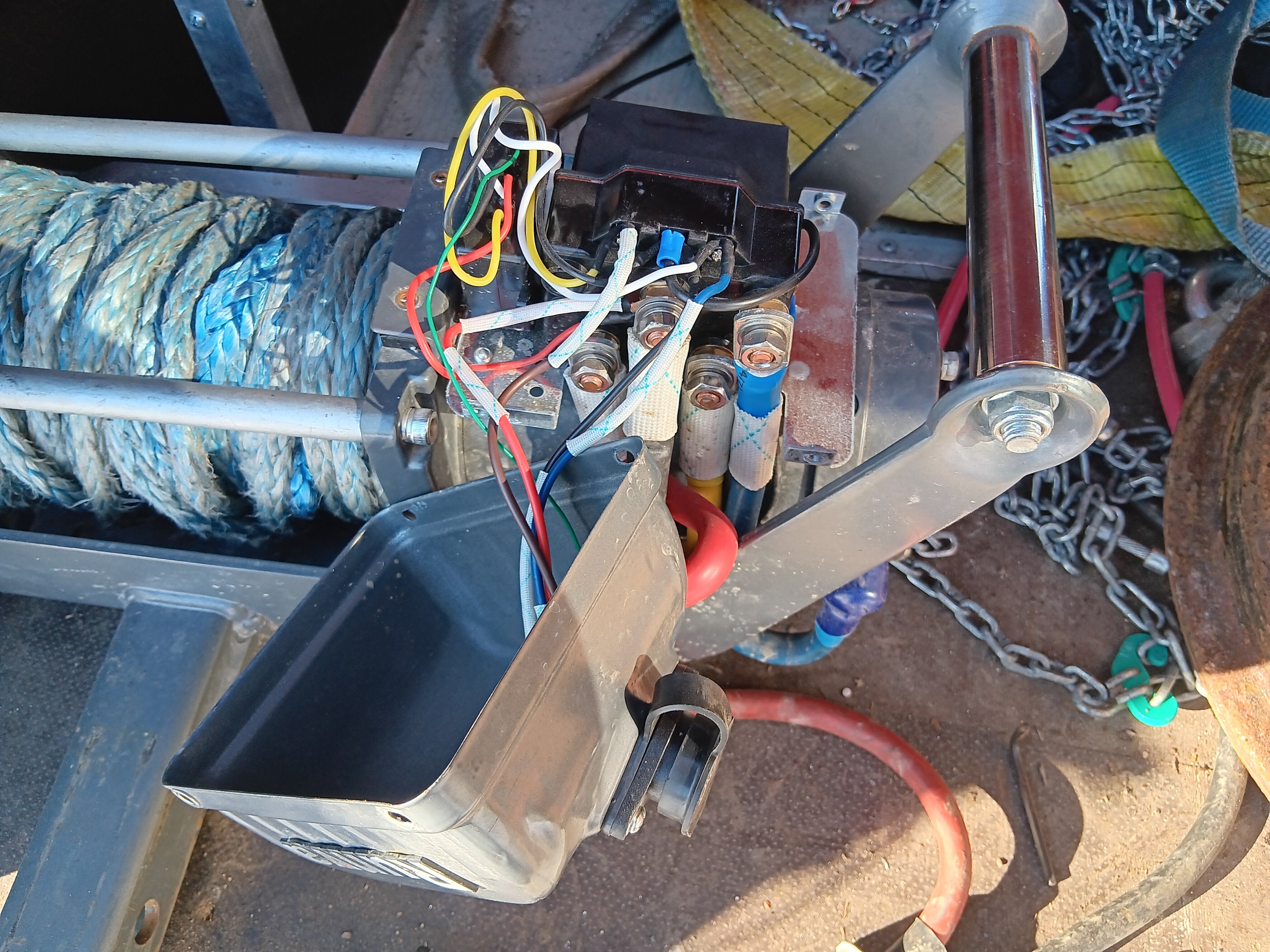 Lootaöljyä käskettiin laittamaan napalukon sisäään ja pitiköhän ne 10tkm välein vai miten usein avata ja putsata, eli katsotaan miten nopeasti tulee paluu orkkiksiin kun näistä pettää laakeri tai joku lukituskuula, on sen verran monimutkainen rakenne. Vinssin ulospäinkelaushan hajosi jo kauan sitten takuuaikana mutta silloin oli niitä offailuhommia sen verta tiheään, ettei kerennyt takuuseen tätä viemään ja olisiko tullut laskun kera pian takaisin että käyttäjävirhe kun tyhjällä akulla sitä silloin rääkkäsin. Mutta nyt innostuin sen laittamaan kuntoon. Sähköhommat kun on vaikeita mutta onneksi löytyi youtubesta hyvä ohje miten pääsee releboksin testaamaan toimivaksi. Siinä kun arvelin vian olevan, kun naksahtaa vain hiljaisesti kun nappia painaa.