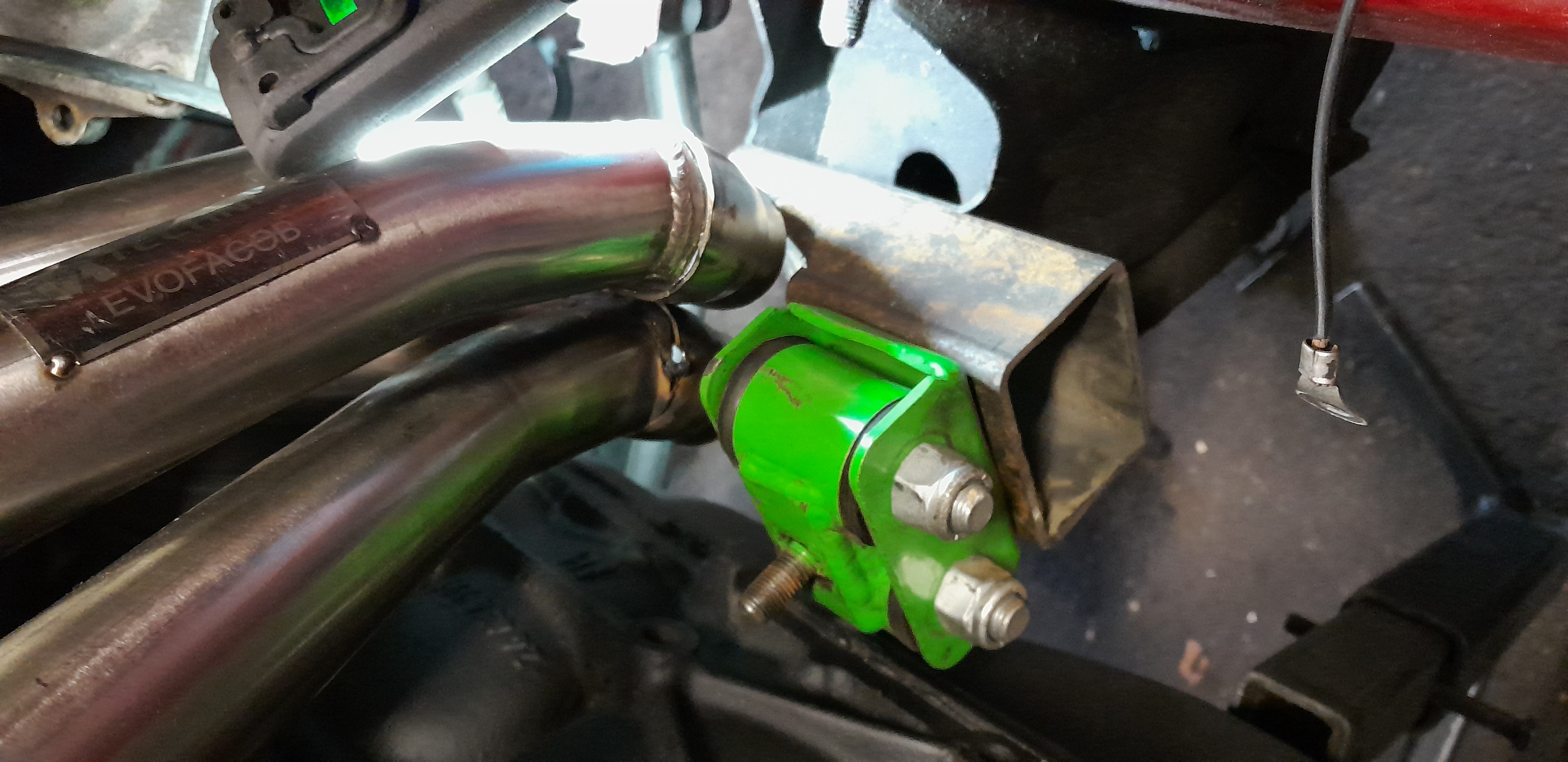 Halpis kiinan pakosarjan muokkausta. Moottorin kiinnike siirtyy eteenpäin ni jostain tuosta varmaan saa putket vedettyä alas...
