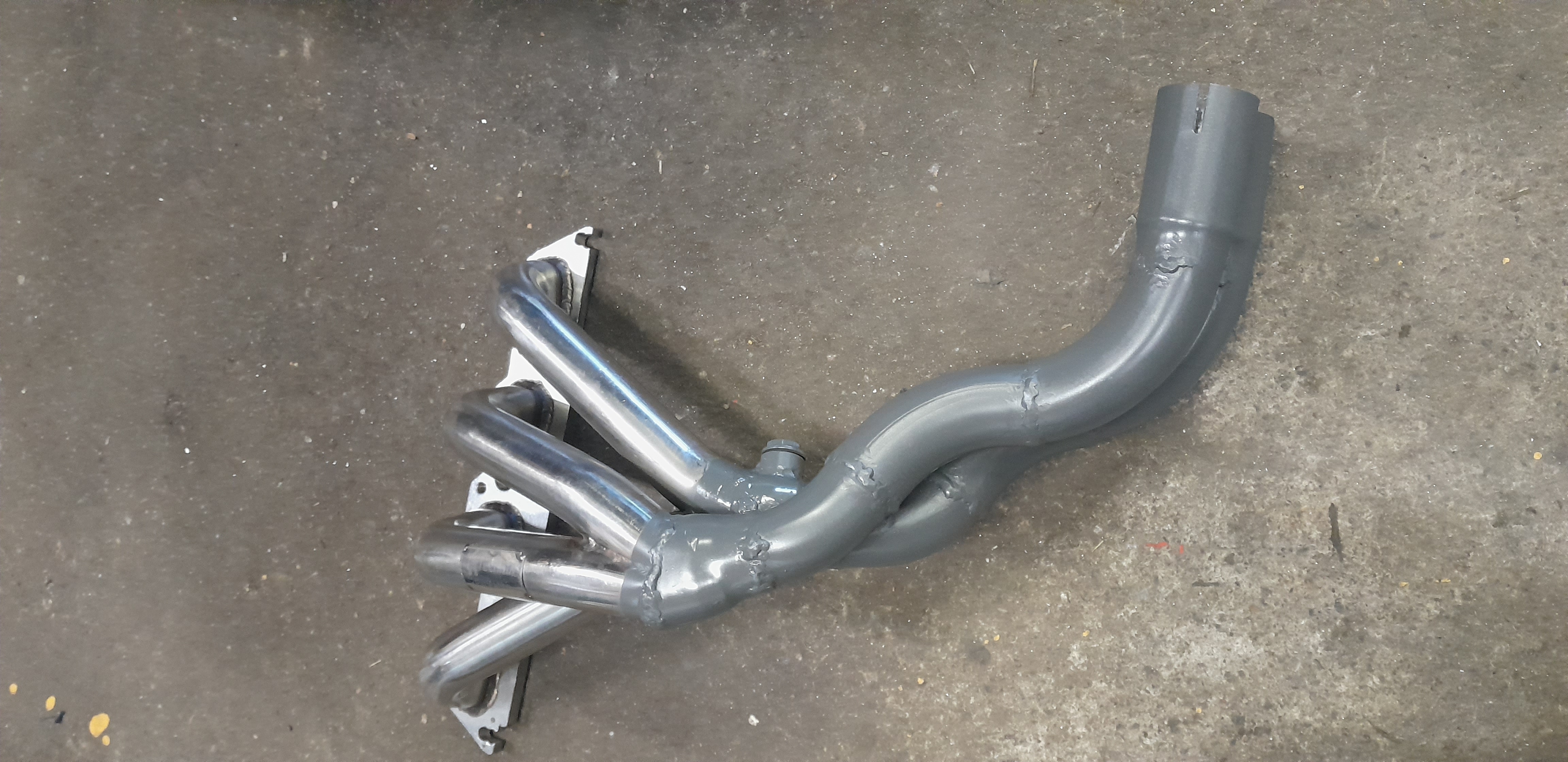 Tänään väsäilin pakosarjaa. Ei näyttäs ottavan mihinkään kiinni ohjausta kääntäessä. Ohjauksen välitangon irroittamalla saa sarjan keploteltua paikalleen. Pitää vielä hitsailla irrotettavat putket sarjan ja pakoputken välille.
