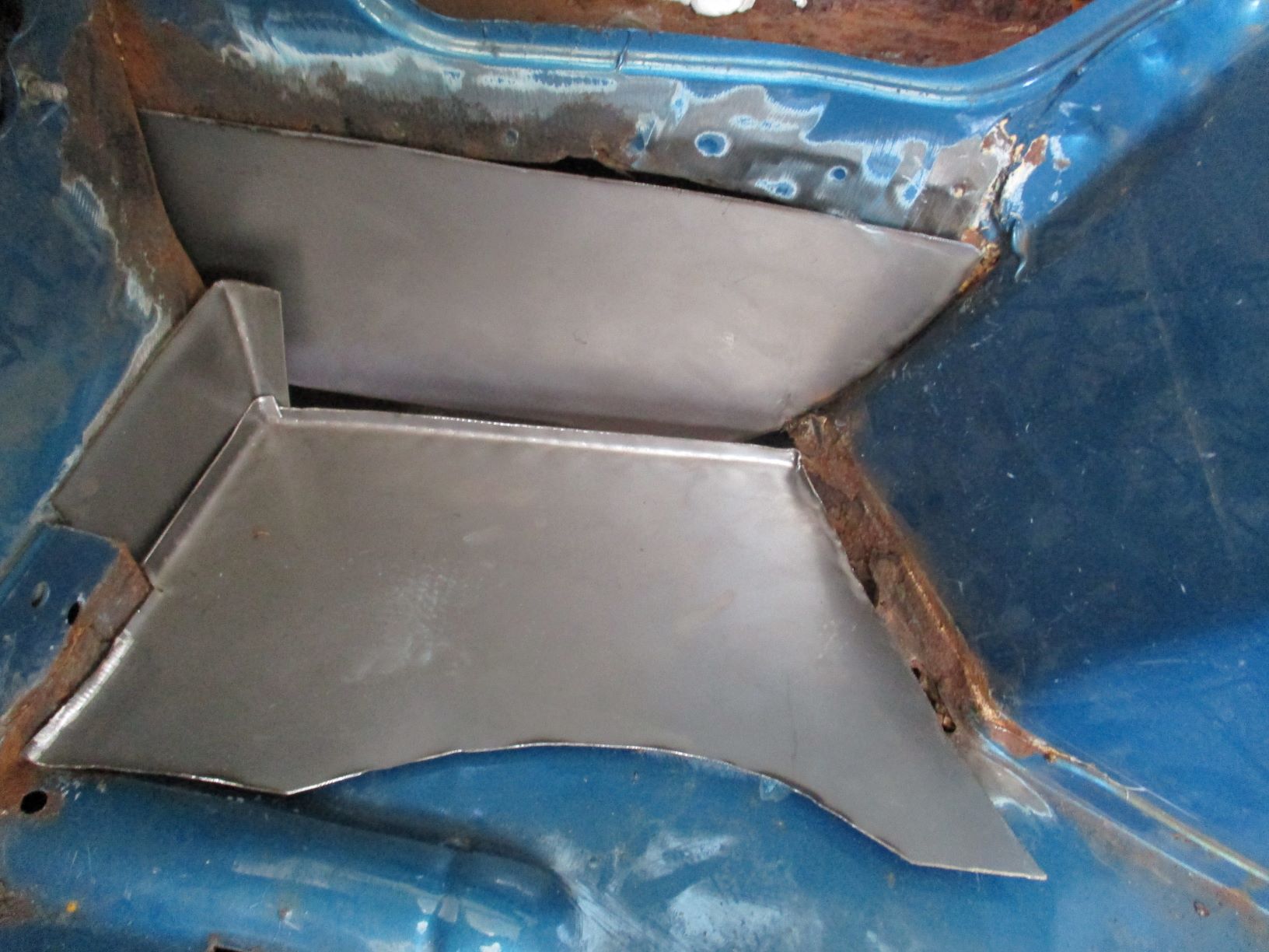 Kuitenkin paljastui, että oikealla ei ole edes reikää takakontin pohjassa eikä pyöränkotelossa. Siellä on vain pyöränkotelon palkin edessä oleva pelti ruostunut pois. Lokarin irrotuksen jälkeen selviää, miten isolta alalta. Vasemmalla palkin pellin lisäksi oli reikä edennyt pyöränkotelossa noin 10cm ylöspäin. Vasemmalla takakontin pohjan takakulma oli myös ruostunut, noin 20cmx20cm alalta. Kuitenkin itse pyöränkotelojen iskunvaimentimien kupit olivat ehjät molemmin puolin. Ei tämä mahdoton ole hitsata. Katsastuksessa sallitaan ilmeisesti takakontin pohjan puuttuminen. Menkää Oravaisten Autokatsastukseen, kun auto on reikiintynyt.
