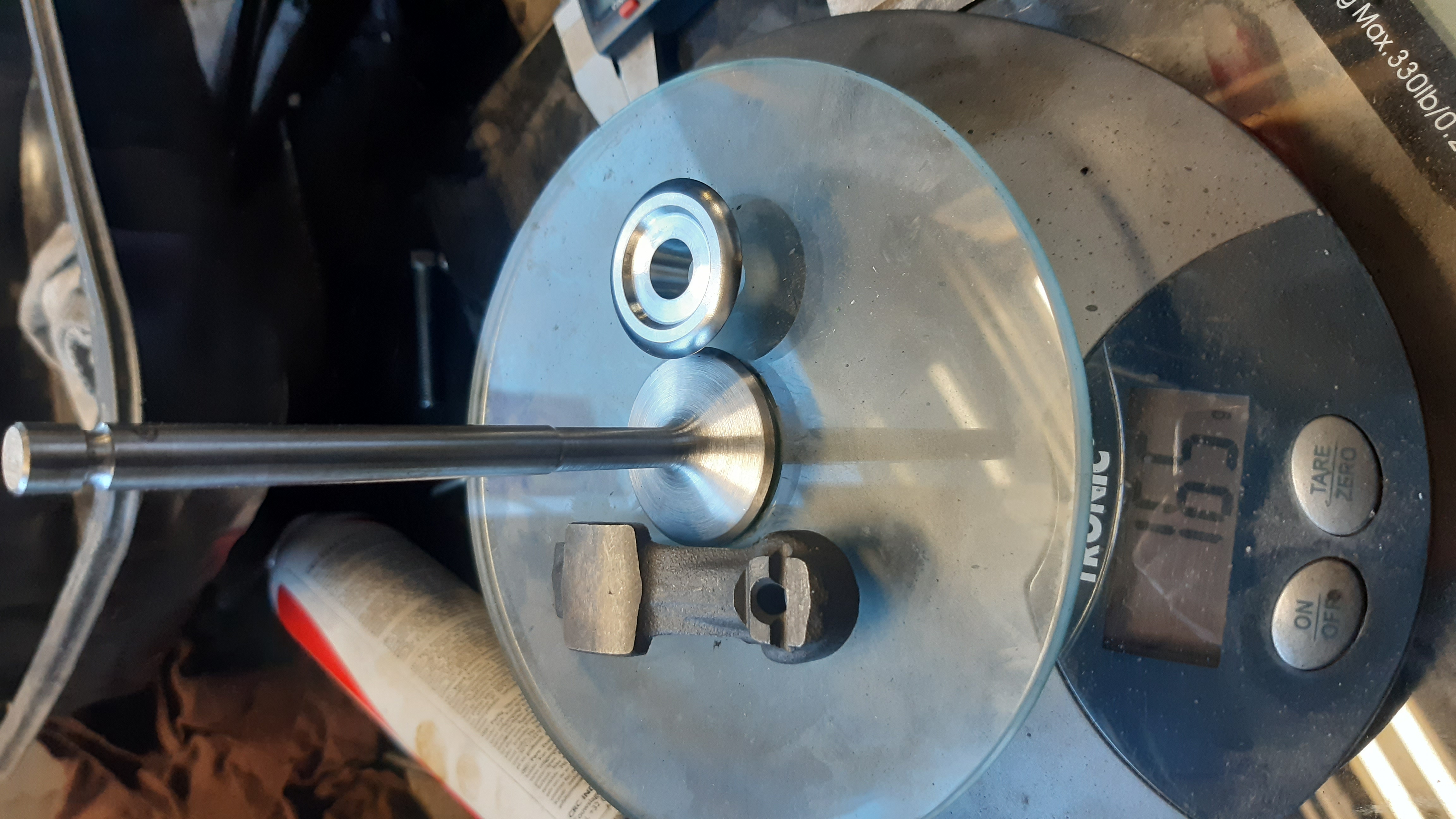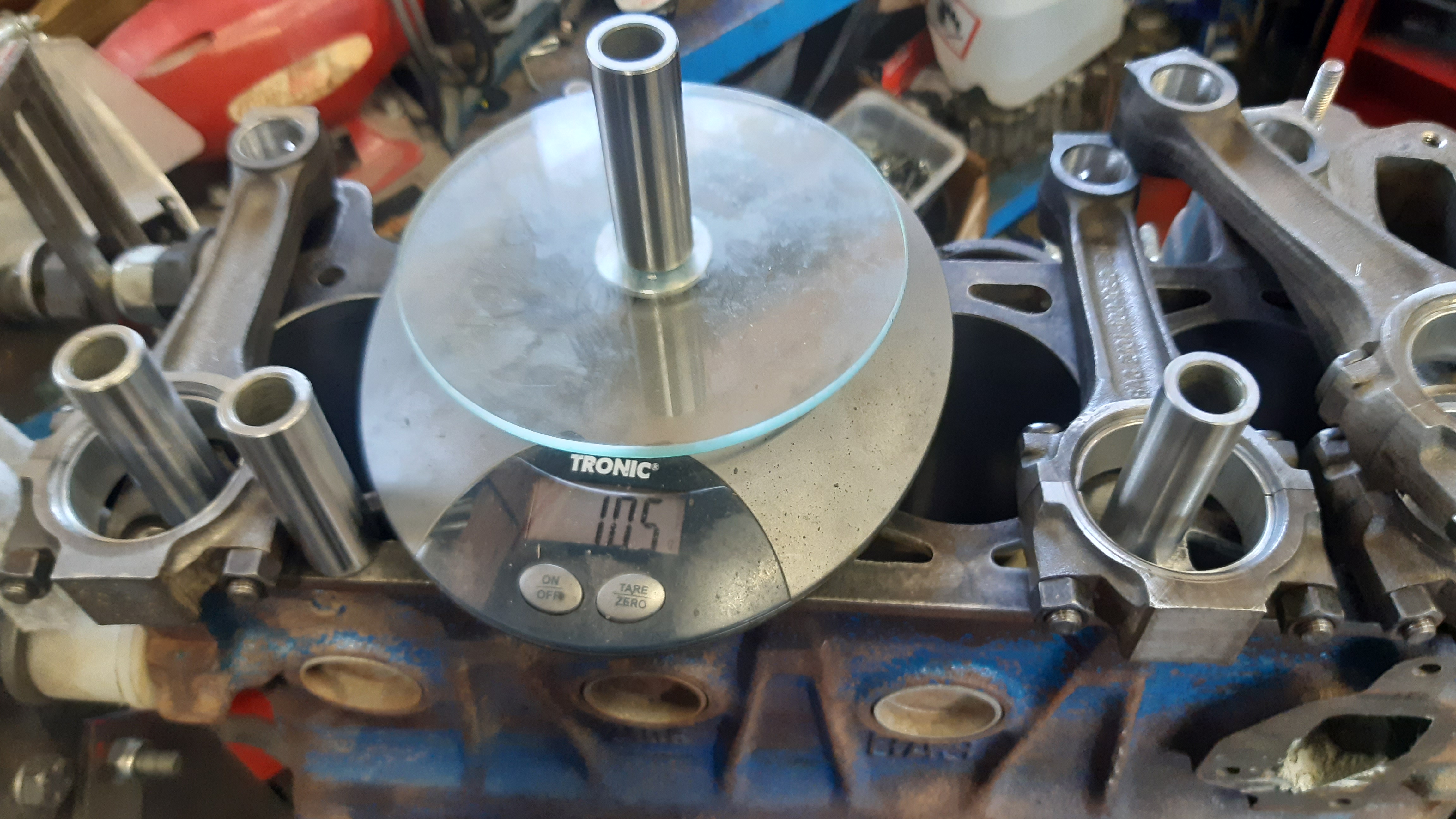Veivit,männät ja tapit punnittu ja arvottu mahollisimman lähelle saman painosiks. Yhestä veivistä hiottu yläpäätä ja nyt on kaikki gramman sisällä.