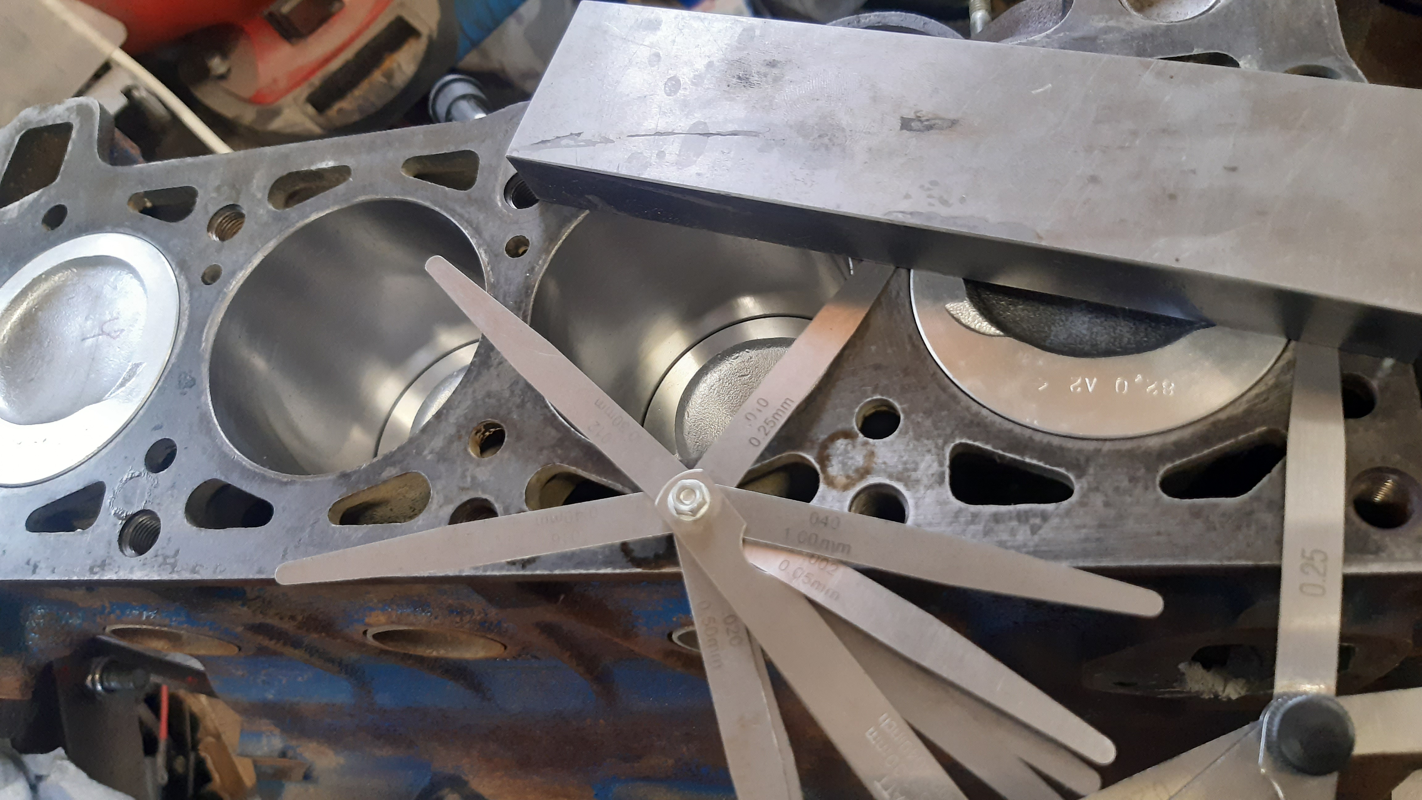 Pyörivät valekasattu ja mäntien ylitykset mitattu, ykkösessä 0,25 ja muissa 0,3mm yli, saapi välttää noin.