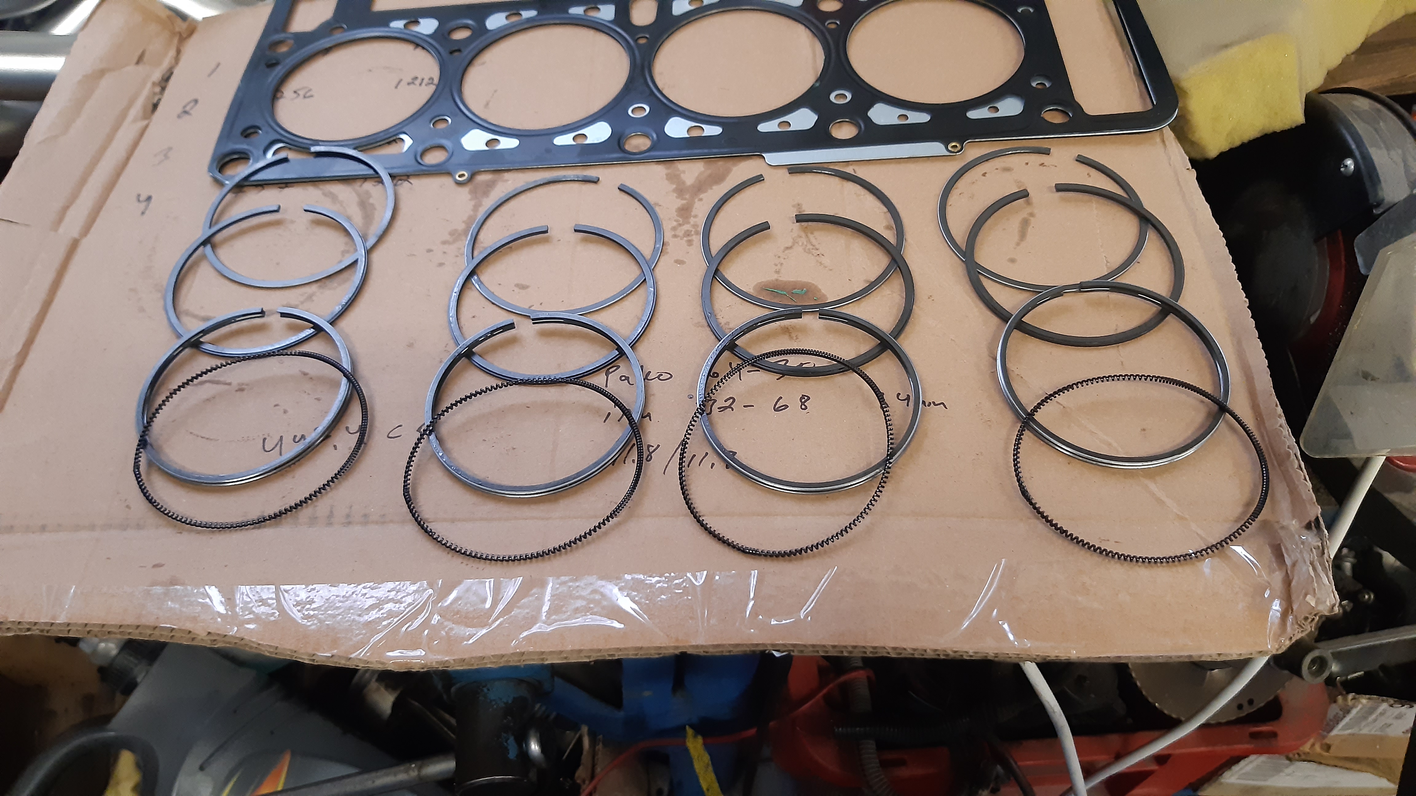 Tänään kerkesin sen verran käymään tallissa, että sain "arvottua" männänrenkaat sopiviin reikiin.