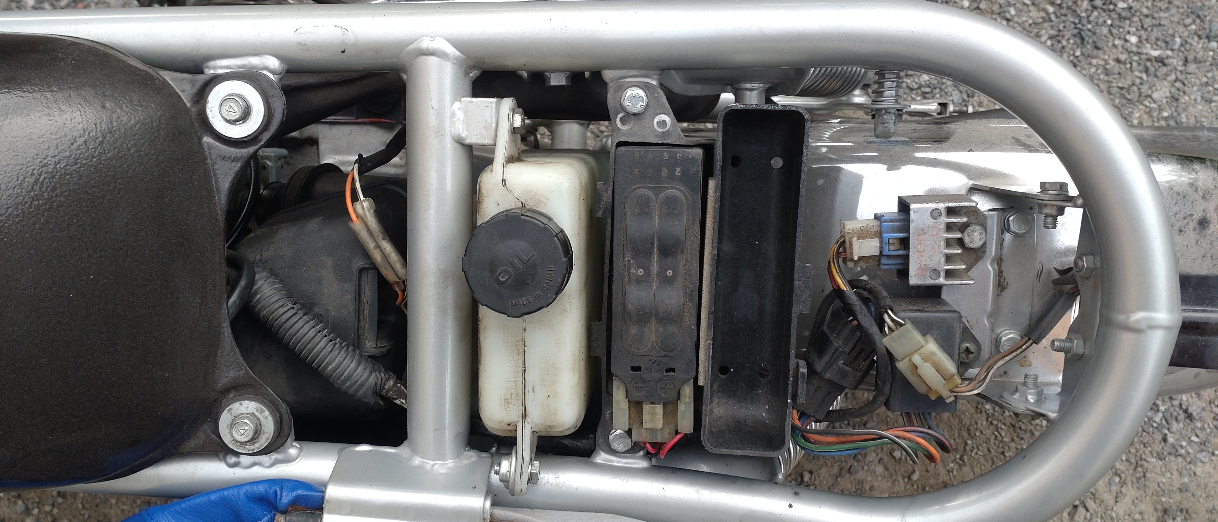 Luonnollisesti tässä on 12 voltin sähköt ja tuoreöljyvoitelu. Ne ovat jo 1998-vuosimallissa, mutta akku puuttuu niistä. Tässä yksilössä on alkuperäinen akku, mutta se on täysin kuollut. Täytyy siis hommata uusi. Samoin renkaat ovat vaihtokunnossa. Mopoon on tehty koneremonttikin viime vuonna, eikä sillä ole ajeltu sen jälkeen mainitsemisen arvoista määrää. Se käynnistyy ja toimii, kun koeajoin sen. Tekniikka on täysin vakio tässä, mikä käsittää 50 cc täysläppäpytyn, 14 mm Mikunin kaasuttimen sekä vakion ilmansuodattimen ja täysin ehjän vakioputken.