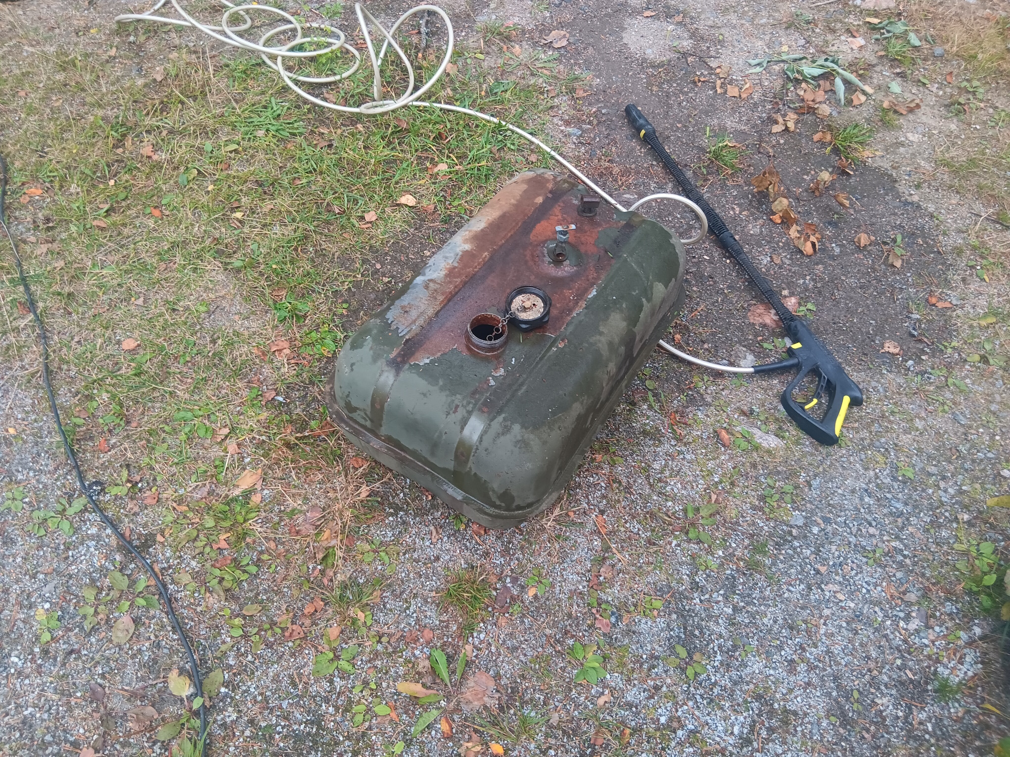 Bensakanisterin kanssa käytiin sitä kesäkuussa kaverien kanssa katsomassa ja ihan asialliseltahan se näytti, jonkin verran sillä ajettiinkin heinäpeltoa ympäri. Jotain toiminta ja -osapuutteita tietty oli. Hinta oli kohtuullinen joten tuli luvattua se ostaa.