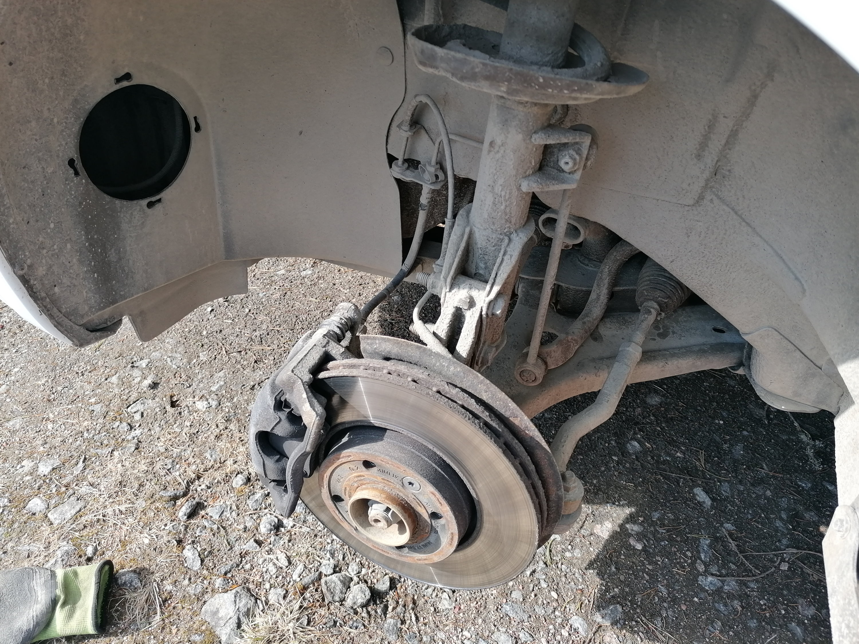 Ja lisätään nyt renkaanvaihdon yhteydessä otetut pari kuvaakin. Tuo sumuvalon aukko pitäisi vielä tukkia, kun molemminpuolin puuttuu joku lätkä siitä.