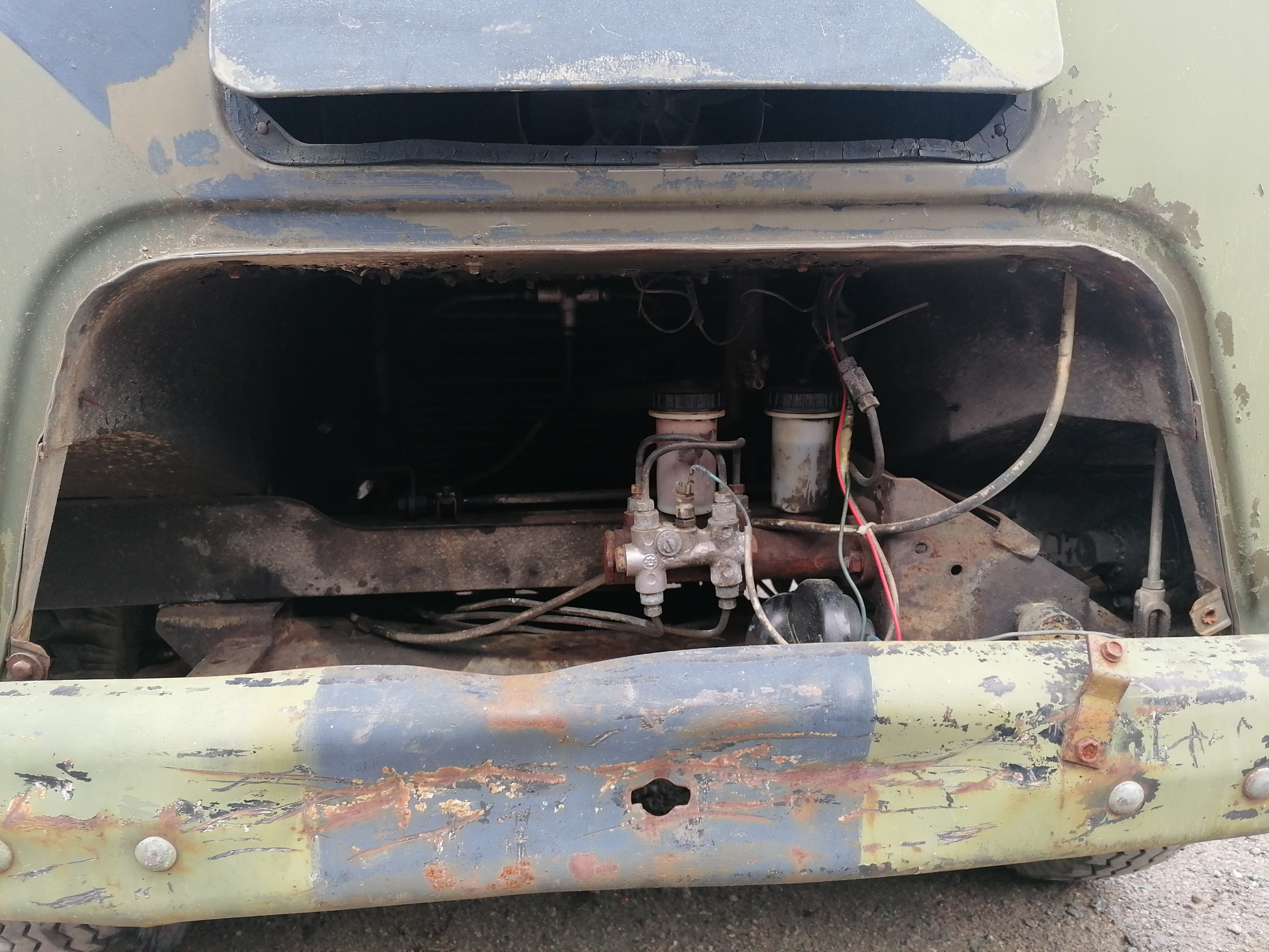 On kyllä melkoinen tankoviidakko ohjaamon alla, kun siellä menee vaihteiston ja jakolaatikon tangot ja jarrupolkimeltakin lähtee ensin pari tankoa ennenkuin voima välittyy pääsylinterille, mikä sijaitsee keulassa poikittain eikä pitkittäin niinkuin järkevintä luulisi olevan.