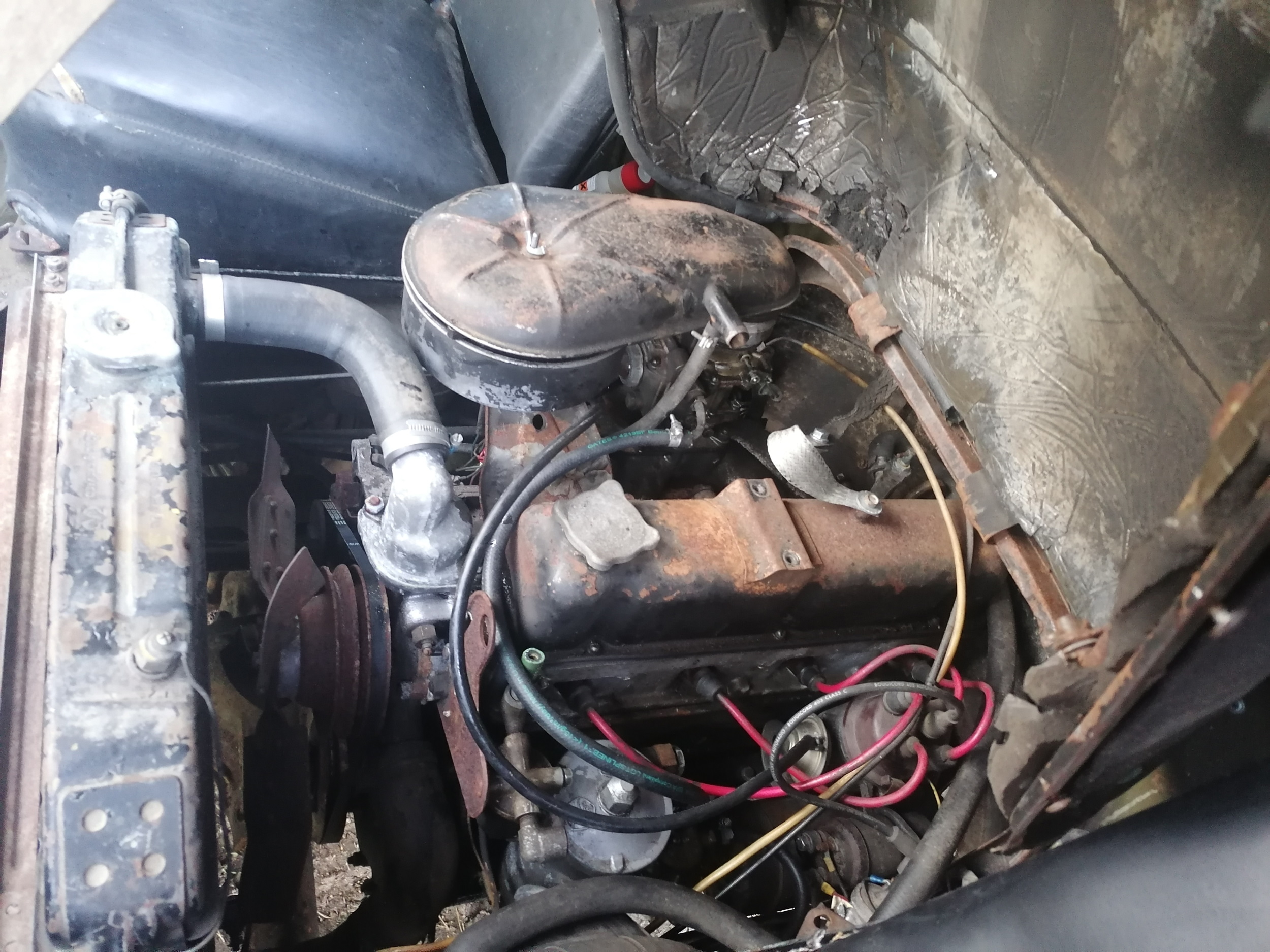 Armeijan huoltovihkon mukaan ensimmäinen moottorinvaihto on tehty n. 1500km kohdalla, jolloin laitettu käytetty moottori tilalle. Ja nykyinen moottori on vaihdettu 2006, jostain on löydetty 24-Volgan moottori, joten hieman enemmän hevosvoimia originaaliin verrattuna mutta hyvin pitkältihän nämä on samanlaisia keskenään. Nykyisen moottorin kilometrimäärää en tiedä. Kaasari on K126G -mallia ja kärjetön sytytys näyttäisi olevan. ja löytyy myös se vauriovärähtelijäkin mikäli sytytysboksi hajoaa. Öljyjen seassa tuli muutama pieni muovinen pala, eli ilmeisesti jakopään hammaspyöristä vähän murtunut.