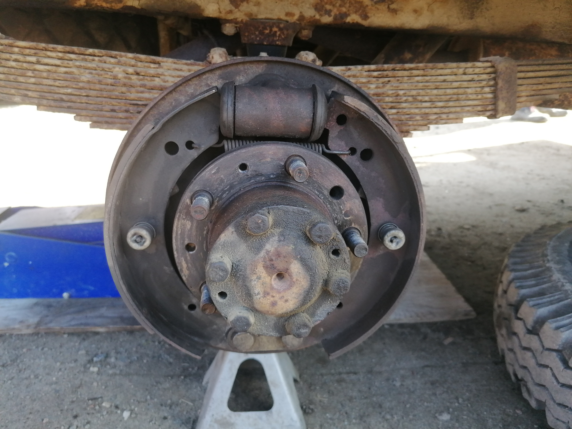 Nämä takajarruthan on tosi yksinkertaiset, eli samanlaiset kuin nappisilmissä sillä erolla että käsijarruhilppeitä ei ole, koska käsijarrurumpu on kardaanissa. Kerta mitään vuotoja ei esiintynyt niin aloitettiin jarrujen ilmaus oikeaoppisesti ensin takaa. Eipä vaan tullut nestettä kummastakaan nipasta.