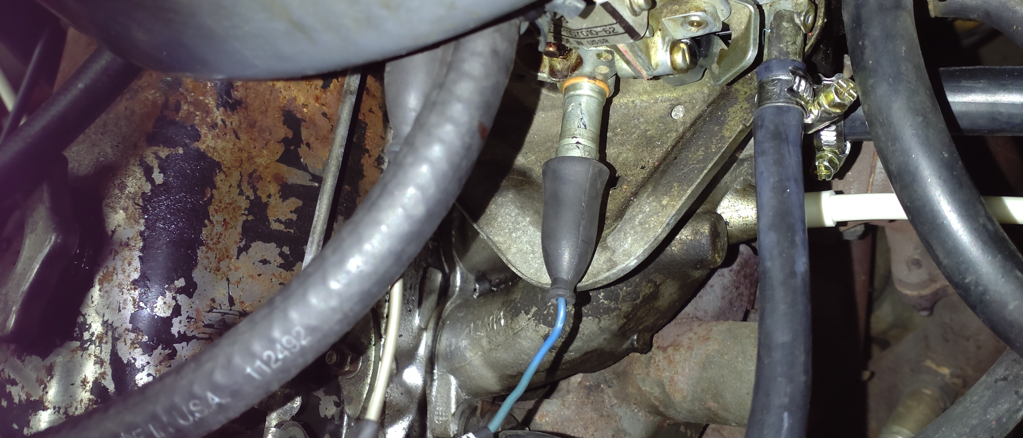 Tekniikka on muuten mainion oloista, mutta Ladassa oli mittaristo pimeänä ja kymppisulake paloi koko ajan. Lisäksi siihen oli vaihdettu axteckin tilalle Samaratyylinen takavedon Solex. Onneksi Axtec-kaasari oli takakontissa mukana. Jarrut tarvitsivat hieman huomiota sekä muutama pieni reikä pitää paikata. Pakoputkea pitää justeerata oikeaan asentoon ja tässä on jostain syystä Combin takapönttö. Muuten tämä on erittäin tervekorinen ja vaikuttaa napakalta. Konetilassa on muuten joku omituinen liitin. Osaako joku kertoa, mikä se voisi olla? Se näkyy yhdessä kuvassa.
